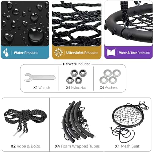 ¡Dale a los niños un lugar divertido para pasar el rato y disfrutar de paseos tranquilos o emocionantes por delante! ¡Columpio en aventuras con el Columpio Giratorio Sorbus! ¡Este columpio de red permite a los niños montar de manera segura durante horas de entretenimiento! Cuenta con un espacioso asiento de cuerda de estilo de tejido en red para un paseo súper cómodo y dos puntos de suspensión robustos para mantener el columpio en su lugar. ¡Es lo suficientemente espacioso para trepar adentro y girar, rebotar, girar, disfrutar del tiempo de juego con amigos o dejar que toda la familia tome un turno! ¡Los adultos también pueden unirse a la diversión, haciendo un montón de recuerdos con un pequeño precioso! Desde la sala de juegos hasta el patio trasero, el columpio giratorio es una adición divertida a tu espacio interior/exterior. ¡El columpio giratorio de red brinda diversión instantánea para un patio trasero, especialmente cuando la escuela ha terminado! ¡Los niños pueden columpiarse solos o con un amigo para eliminar el aburrimiento un día soleado a la vez! Como un escape acogedor, es el lugar perfecto para leer, escuchar música, anidarse en un capullo y estimular la imaginación. ¡Colgado en el interior para que los niños se puedan acurrucar en cualquier momento que necesiten «escapar» o montarlo desde una robusta rama de árbol para citas de juego, picnics y fiestas! Las cuerdas extremadamente resistentes funcionan en casi todos los árboles, juegos de columpios o postes con suspensión robusta. ¡Es portátil, por lo que puedes reubicar la diversión en cualquier momento o guardarlo cuando no esté en uso! ¡Cuelga en minutos! Este columpio está diseñado para una instalación segura y fácil de configurar, quitar o reubicar. Asiento de red de cuerda de tela de araña resistente con material de nylon tejido y marco de tubo de acero. (El asiento de cuerda es: 5mm PE). Cuelga con anillos de acero y cuerda de suspensión resistente de hasta 63″ de largo. ¡Se requiere supervisión de adultos y montaje! ¡Recomendado para niños de 5 años en adelante! ¡El peso máximo es de 100 kg! ¡La inclinación máxima es de 45 grados! Mide aproximadamente 24″ de diámetro x 63″ de altura. ¡Los columpios giratorios son una forma divertida de comenzar el verano y son el regalo perfecto para niños, nietos y amigos!