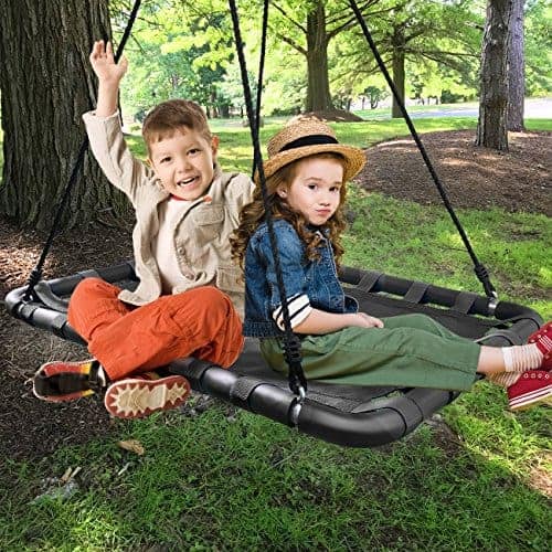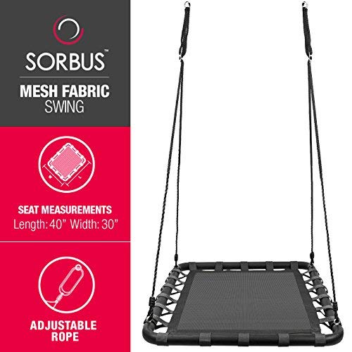 ¡Dale a los niños un lugar divertido para reunirse y disfrutar de paseos calmados o salvajes por delante! ¡Columpio hacia la aventura con el Columpio de Plataforma Mat de Sorbus! Este columpio permite a los niños andar con seguridad en acción durante horas de entretenimiento. Cuenta con un espacioso asiento rectangular para un paseo súper cómodo y dos puntos de suspensión sólidos para mantener el columpio en su lugar. ¡Es lo suficientemente espacioso para trepar y girar por dentro, rebotar, torcerse, disfrutar del tiempo de juego con amigos o dejar que toda la familia se dé la vuelta! Los adultos también pueden unirse a la diversión, creando toneladas de recuerdos con un precioso pequeño. Desde el cuarto de juegos hasta el patio trasero, el columpio de plataforma es una adición divertida a su espacio interior/exterior. El columpio de plataforma mat proporciona diversión instantánea a un patio trasero, ¡especialmente cuando la escuela está fuera! Los niños pueden columpiarse solos o con un amigo para eliminar el aburrimiento un día soleado a la vez. Como un escape acogedor, es el lugar perfecto para leer, escuchar música, anidar en un capullo y estimular la imaginación. Cuélguelo en interiores para que los niños puedan acurrucarse en cualquier momento que necesiten «escaparse» o móntelo desde una rama de árbol resistente para citas de juegos, picnics y fiestas. Las cuerdas extremadamente resistentes funcionan en casi todos los árboles, conjuntos de columpios o postes con suspensión sólida. ¡Es portátil, por lo que puede reubicar la diversión en cualquier momento o guardarla cuando no se use! ¡Cuélguelo en minutos! Este columpio está diseñado para una instalación segura y es fácil de instalar, desmontar o reubicar. Asiento de malla de polipropileno resistente. Marco de tubo de acero acolchado con espuma NBR para soporte. El paquete incluye columpio de plataforma, accesorios de montaje e instrucciones. Se requiere supervisión de adultos y montaje. Recomendado para niños de 3+ años. Apto para 2-3 niños. ¡Divertido para adultos también! Peso máximo de 220 libras. La inclinación máxima es de 45 grados. Mide aproximadamente 40″(L) x 30″(W) x 68″(H) y 1.6″(grueso).
