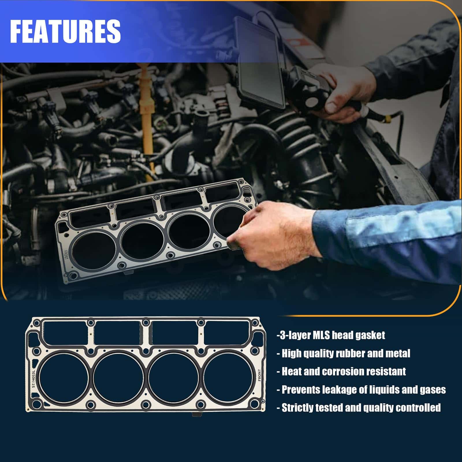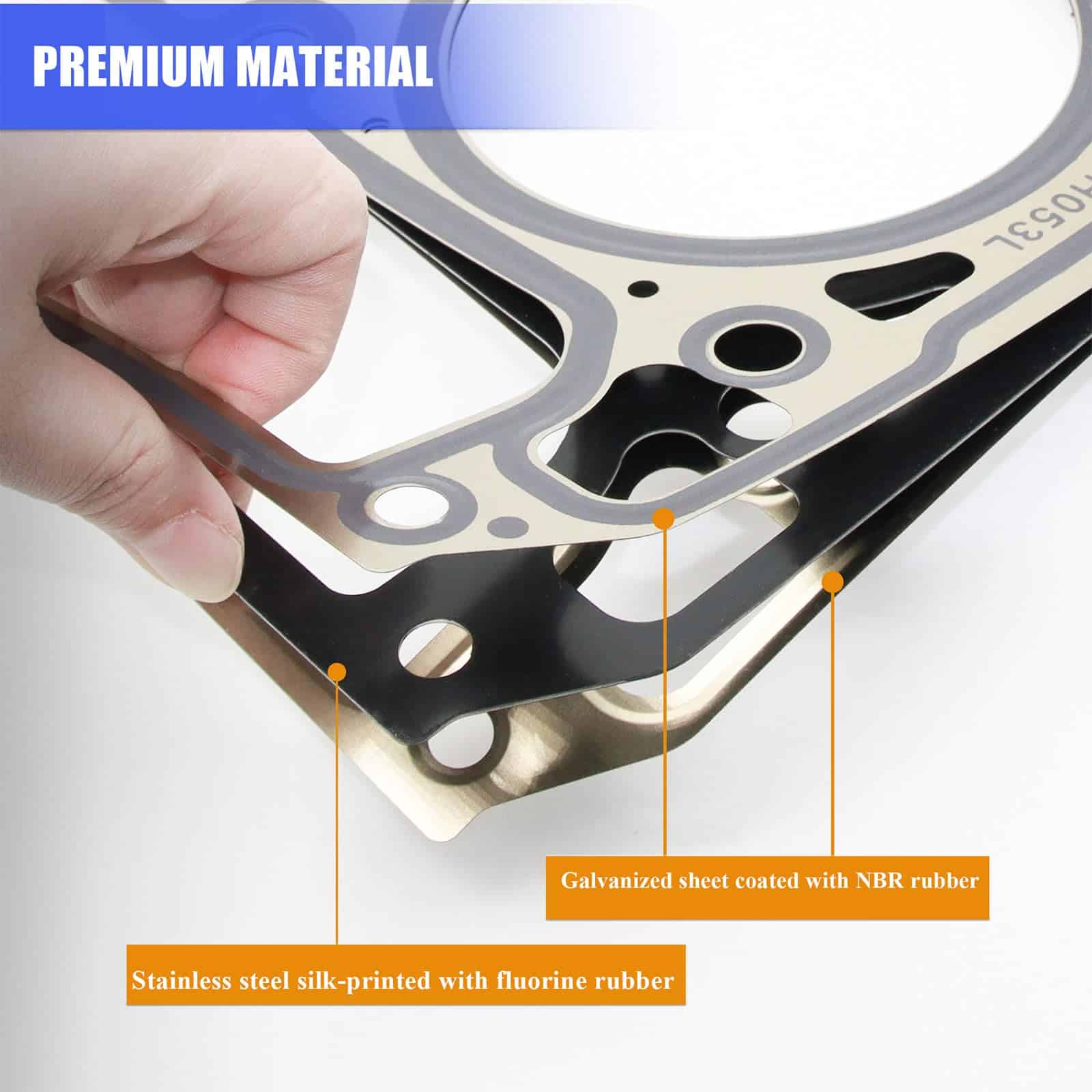4. MEJORA EN EL RENDIMIENTO DEL MOTOR El juego de juntas MLS de 3 capas está hecho de metal de alta resistencia y materiales resistentes al calor, asegurando un sellado perfecto entre la culata del motor y el bloque del motor, evitando fugas de refrigerante, aceite y gases de combustión, manteniendo efectivamente el rendimiento del motor. Puede soportar el entorno de alta temperatura y presión del motor, garantizando un funcionamiento estable a largo plazo y evitando el sobrecalentamiento o daño del motor debido a fallas en las juntas.