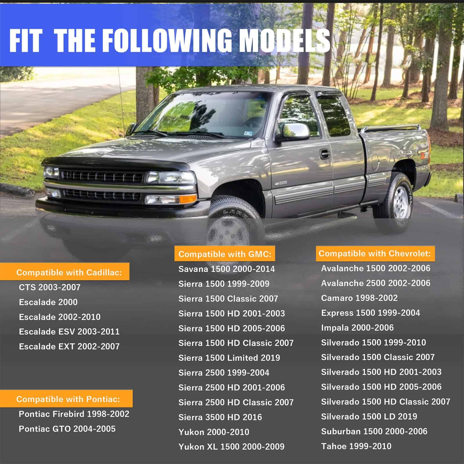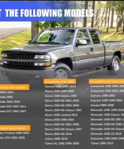 3. COMPATIBLE CON VEHÍCULOS Para GMC: Savana 1500 2000-2014, Sierra 1500 1999-2009, Sierra 1500 Classic/1500 HD Classic/2500 HD Classic 2007, Sierra 1500 HD 2001-2003, 2005-2006, Sierra 1500 Limited 2019, Sierra 2500 1999-2004, Sierra 2500 HD 2001-2006, Sierra 3500 HD 2016, Yukon 2000-2010, Yukon XL 1500 2000-2009, Pontiac Firebird 1998-2002, GTO 2004-2005.