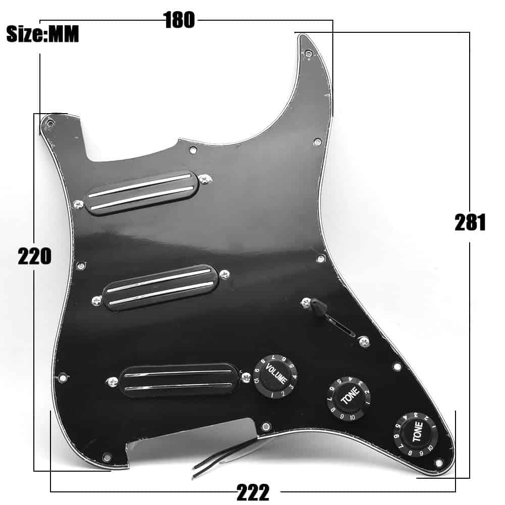 2. Pickguard: Hecho de material de PVC de 3 capas (negro/blanco/negro), 11 orificios de tornillo en el lado del pickguard, 3 orificios para pastilla de bobina simple.