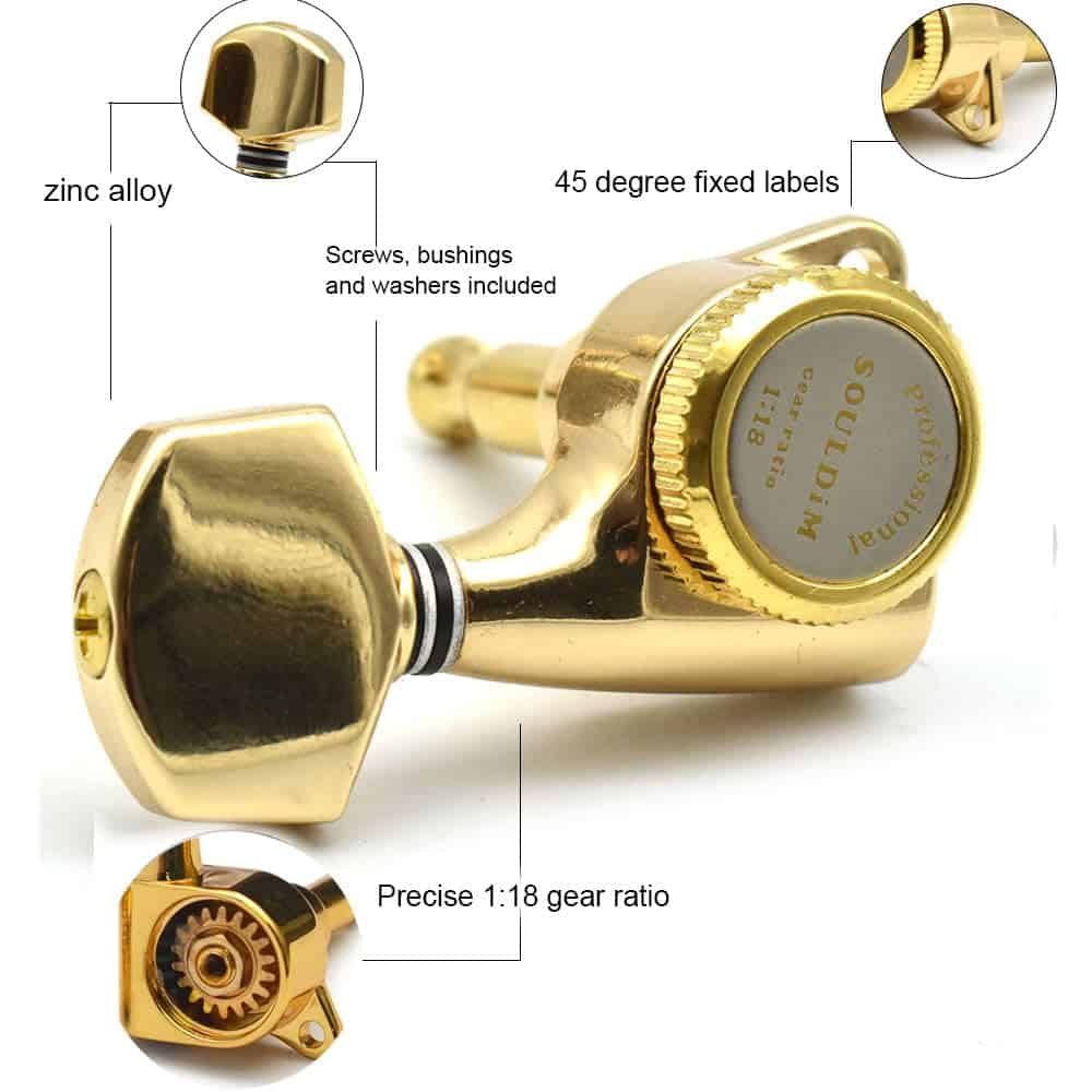 Afinadores de bloqueo de guitarra con engranajes internos resistentes, robustos y convenientes.