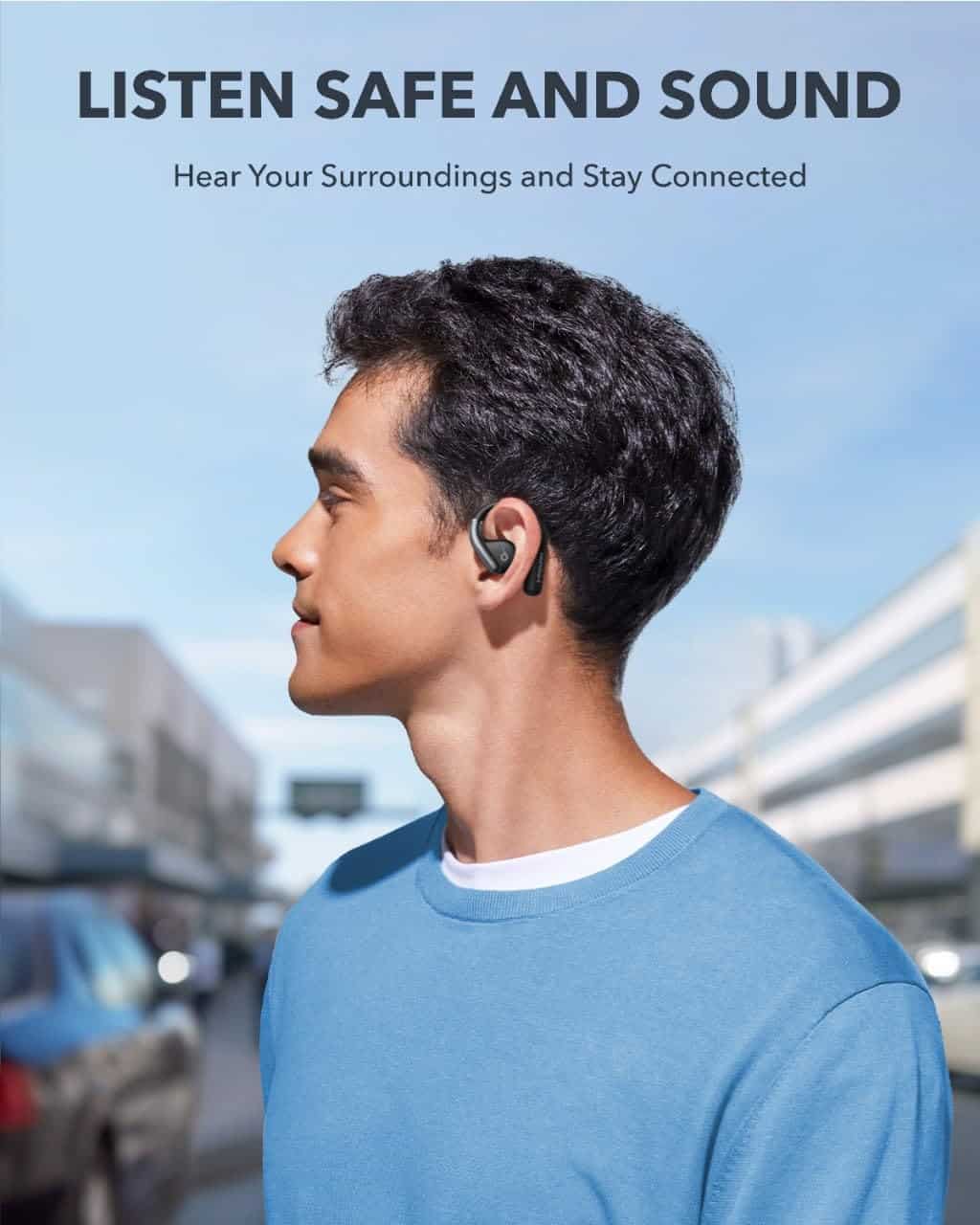 Soundcore by Anker presenta los nuevos auriculares de diadema abiertos AeroFit, diseñados para brindar comodidad superior y una experiencia auditiva increíble. Estos auriculares cuentan con un diseño no intrusivo y ganchos suaves y flexibles que se ajustan perfectamente a tus orejas, permitiéndote llevarlos puestos durante todo el día sin molestias. La tecnología de control de aplicaciones Bluetooth 5.3 te permite personalizar tu experiencia auditiva y acceder a funciones avanzadas.
