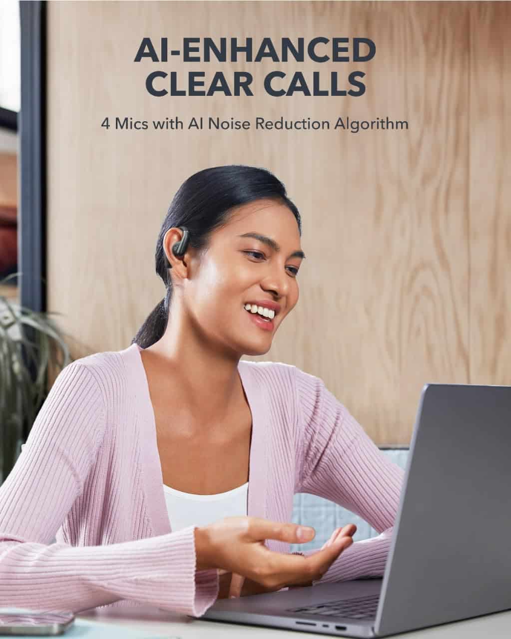 Los drivers de AeroFit están equipados con diafragmas compuestos con domos recubiertos de titanio, lo que garantiza un sonido equilibrado con medios sinfónicos, un escenario sonoro expansivo y agudos cristalinos. Además, los 4 micrófonos y el algoritmo de reducción de ruido de inteligencia artificial garantizan llamadas nítidas y claras en todo momento.