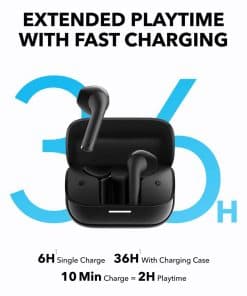 Soundcore K20i by Anker te brinda una experiencia auditiva única con sus audífonos semi-in-ear inalámbricos Bluetooth. Con hasta 36 horas de duración de la batería y una carga rápida de solo 10 minutos que te proporciona 2 horas adicionales de reproducción, estarás listo para disfrutar de tu música favorita en cualquier momento y lugar. Los Soundcore K20i están diseñados con un controlador dinámico de 13 mm y un diseño de toro innovador que junto con la tecnología BassUp, ofrecen un sonido claro y nítido ideal para podcasts.
