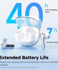 4. 40Hrs en Total y Modo Juego – Con una duración de batería de 40 horas, los auriculares SoundPEATS Clear alivian la ansiedad por la energía y proporcionan hasta 7 horas de tiempo de escucha con una sola carga. El estuche de carga ofrece 5 recargas adicionales para una reproducción de música prolongada. El modo juego mantiene el sonido e imágenes sincronizados y te permite distinguir posiciones para una experiencia de juego inmersiva.