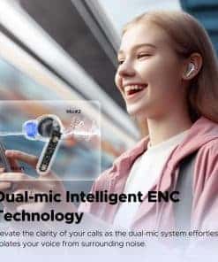 5. Doble micrófono y Llamadas Claras – Dile adiós a las llamadas distorsionadas y concéntrate en tus conversaciones con confianza. La innovadora transmisión de sonido direccional enfoca el micrófono en tu voz, capturando cada palabra con precisión. El micrófono doble en cada configuración de auriculares inalámbricos suprime eficazmente el ruido ambiental, brindando llamadas claras y nítidas tanto para ti como para la persona al otro lado. Mantente conectado con una calidad de llamada cristalina, sin importar dónde te encuentres.