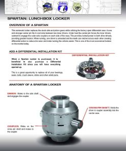 El Spartan Locker, de USA Standard Gear, proporciona tracción confiable a bajo costo. El diseño del locker Spartan no utiliza arandelas de empuje y cuenta con un innovador resorte y diseño de pasador que facilita la instalación. Este locker automático reemplaza los engranajes laterales y el piñón de serie mientras utiliza el caso diferencial abierto de fábrica. Un nuevo y más fuerte pasador central se ajusta en ranuras ovaladas entre dos drivers internos. Bajo carga, el pasador central empuja hacia afuera los drivers internos para enganchar los acopladores de eje exteriores en cada lado del caso. Esto proporciona potencia bloqueada a ambas ruedas motrices, ofreciendo mayor tracción. Al girar, un driver queda descargado y los dientes pueden moverse entre sí creando una acción diferencial para reducir el desgaste de los neumáticos y hacer que girar el vehículo sea más fácil. ¡Este es uno de los lockers más económicos en el mercado actual!