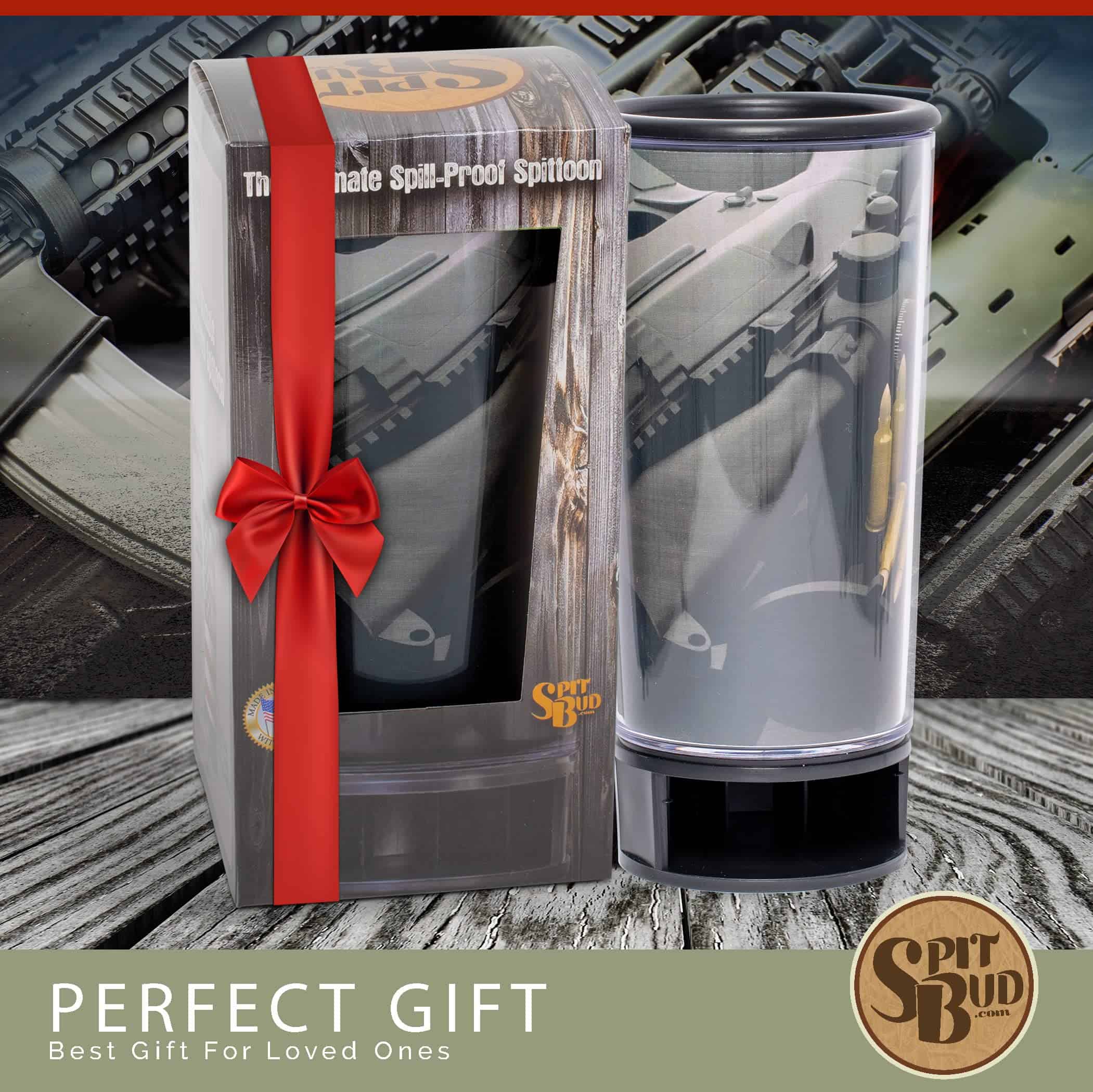 ¿Conoces a alguien que es un masticador ávido? ¡Hazle su día con el Sniper Spit Bud! Cada vaso para escupir está empaquetado en una caja, listo para regalar e impresionar. Además, cada Spit Bud es un orgulloso producto estadounidense. Está hecho en EE. UU. por ciudadanos estadounidenses hábiles. Mejora tus sesiones de masticado y apoya una marca local y autóctona con cada compra.