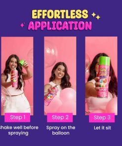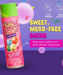 3. Radiante de Larga Duración – Mantenga la fiesta viva con globos que brillan intensamente durante horas. Party Shine Spray proporciona un brillo duradero y duradero que mantiene la brillantez de sus decoraciones durante todo el evento.