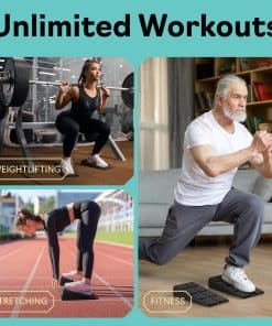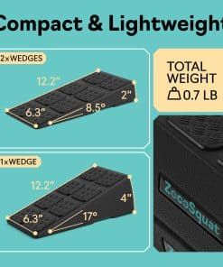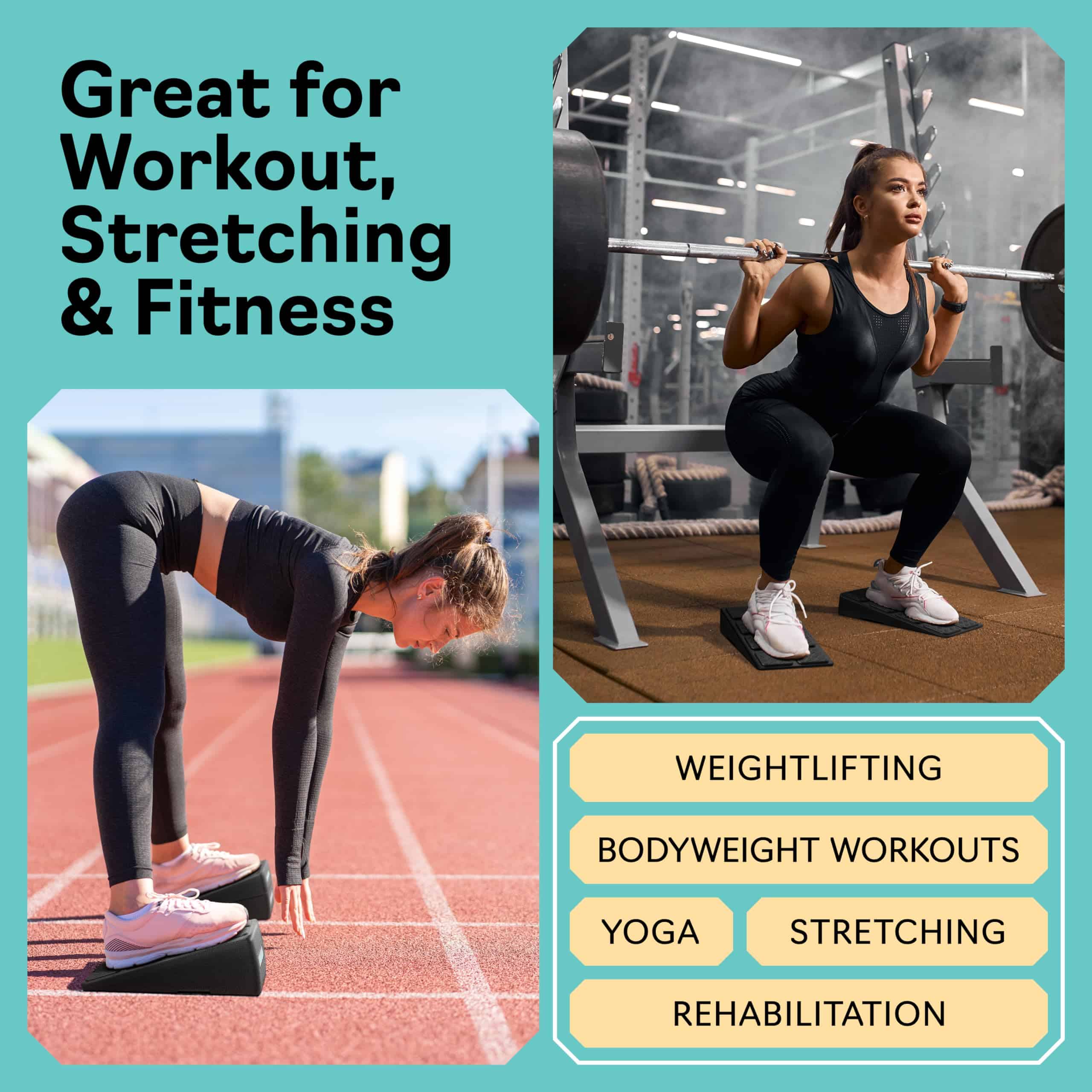 5. UNIVERSAL Y PORTÁTIL. Hacer ejercicio con una cuña de estiramiento de pantorrillas funciona igualmente para principiantes, atletas avanzados y personas en terapia física. Ligero y compacto, este set se convierte en su tabla de sentadillas portátil para el hogar, el gimnasio e incluso al aire libre por igual