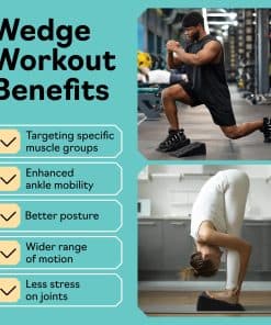 3. ENTRENAMIENTOS MEJORADOS. Con un set de cuñas para sentadillas, mejora la movilidad del tobillo y reduce la presión sobre tus articulaciones. No es solo para un entrenamiento de pantorrillas: las cuñas mejoran tu postura y ayudan a intensificar tu entrenamiento regular para obtener mejores resultados.
