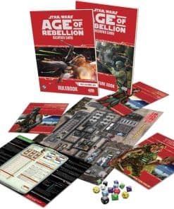 Gather your friends and get ready for adventure in the Star Wars galaxy with the Star Wars : Age of Rebellion Beginner Game. Whether you are brand-new to roleplaying or just new to Age of Rebellion, the Beginner Game is the perfect starting point for players of all skill levels. The Age of Rebellion Beginner Game is a complete, standalone game for three to five players. Open the box and begin playing immediately! Four pre-generated characters and a complete, learn-as-you-go adventure allow you to dive right into the conflicts between the daring members of the Rebel Alliance and the vast military might of the galactic Empire. Character folios keep the rules right at your fingertips, while custom dice and an exciting narrative gameplay system expand your story with every roll. Moreover, detailed rules allow you to continue your exploits throughout the galaxy far beyond the included adventure!