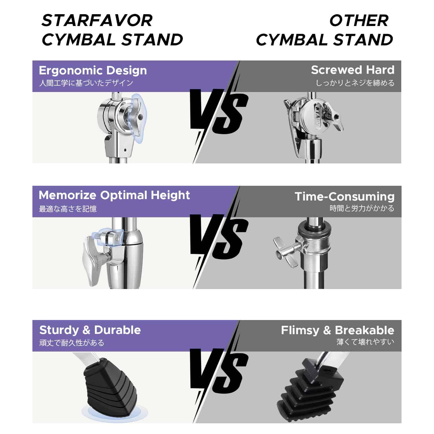 Starfavor es una marca joven, pero tenemos el espíritu más ingenioso, vertiremos amor por la música y el arte en cada uno de nuestros productos. El soporte de platillo Starfavor está hecho de metal de alta calidad y electroplateado, una pieza sólida con un aspecto brillante. El soporte tiene un rango de ajuste de altura de 22 pulgadas a 49 pulgadas, y un rango de extensión de la barra inclinada de 16 pulgadas.Los soportes de pierna larga de 16.5 pulgadas garantizan que el soporte sea estable. Elige Starfavor, tendrás 12 meses de soporte de servicio limitado del producto. Contáctanos si tienes algún problema, te responderemos lo antes posible.