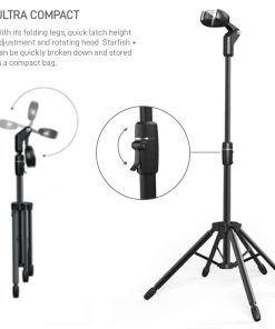 El soporte de guitarra D&A Starfish+ es el «soporte de guitarra más seguro» del mundo. Nuestros soportes para guitarra utilizan acero laminado en frío y una base segura patentada de 5 patas para evitar caídas. Nuestro mecanismo de bloqueo de cabeza patentado activado por gravedad asegura el instrumento al soporte de guitarra. La tela archivística patentada y la espuma TPE evitan los arañazos. El soporte de guitarra se puede utilizar como soporte para guitarra eléctrica y acústica, así como soporte para bajo, mandolina, ukelele, banjo o instrumento para todos los instrumentos con mástiles de hasta 2-1/8″. Hecho con materiales premium y una construcción líder en la industria, nuestros soportes de guitarra profesionales pueden soportar los golpes, patadas, golpes y pausas que hacen que los competidores caigan al suelo. Ya sea enfrentando los rigores de la carretera como un soporte de guitarra para viajes, apoyando la pieza central de un estudio en casa, o sirviendo como un soporte de exhibición, el STARFISH+ puede con todo. D&A proporciona soportes de guitarra inteligentes, fáciles de usar y de alta calidad, así como soluciones para el músico apasionado.