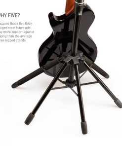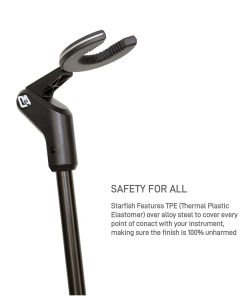 El Soporte de guitarra pasiva de D&A Guitar Gear es un accesorio de guitarra «Lo Mejor de la Clase». Es el único soporte de piso de yugo abierto de 5 patas en la cara del planeta, y el soporte de guitarra más seguro del mundo. El Starfish pasivo es para usar con guitarras eléctricas y acústicas, bajos, mandolinas, ukuleles, banjos y más, con cuellos de hasta 2-1/8″. El Starfish pasivo puede manejar los golpes, golpes y empujones que hacen que los competidores caigan al suelo. Mientras que otros soportes se caen con solo 15 grados de inclinación, el Starfish se mantiene firme resistiendo hasta 33 grados. Todo se reduce a un soporte que es más de dos veces más estable y un instrumento que es 100% más seguro. Lleve la seguridad donde más importa en la carretera. El Starfish se dobla a la mitad de su tamaño en segundos, para que nunca tenga que elegir entre seguridad y una configuración rápida nuevamente. Las guitarras son arte. El Starfish las trata como tal. Diseñado según las especificaciones de los coleccionistas de élite, el Starfish utiliza polímero T.P.E. para cubrir los puntos de contacto entre el Starfish y su guitarra, asegurándose de que su instrumento permanezca una obra maestra. ¿Quiere la seguridad de un mecanismo de auto bloqueo sin el volumen y el peso? Su deseo se cumple. El Starfish utiliza el sistema de bloqueo por fricción Grip de D&A Guitar Gear. El sistema Grip elimina virtualmente la posibilidad de deslizamiento del instrumento mediante el uso de dientes espaciados óptimamente para maximizar el agarre en prácticamente cualquier instrumento de cuerda. Materiales de primera calidad, diseño innovador e ingeniería revolucionaria significan que el Starfish es el último soporte que necesitará comprar. Ya sea resistiendo las exigencias de la carretera o apoyando el centro de un estudio en casa, el Starfish puede con todo. D&A Guitar Gear proporciona soluciones de diseño inteligentes, fáciles de usar y de alta calidad para el músico apasionado. No solo funcionan bien, también lucen genial y se adaptan a su estilo de vida a un precio asequible. Así que adelante, alimenta la pasión dentro de ti.