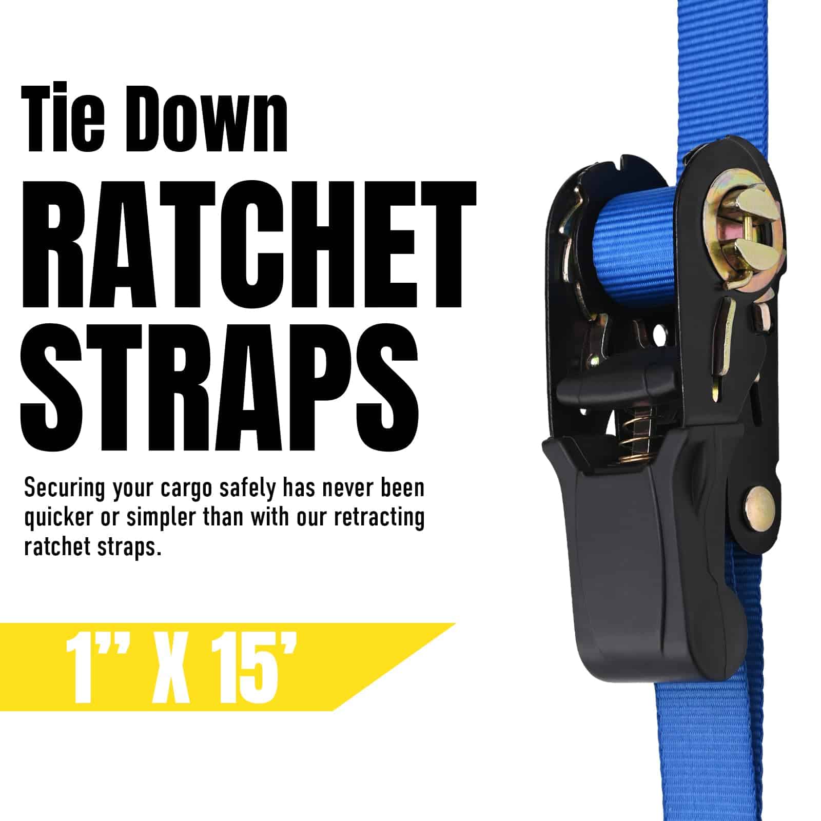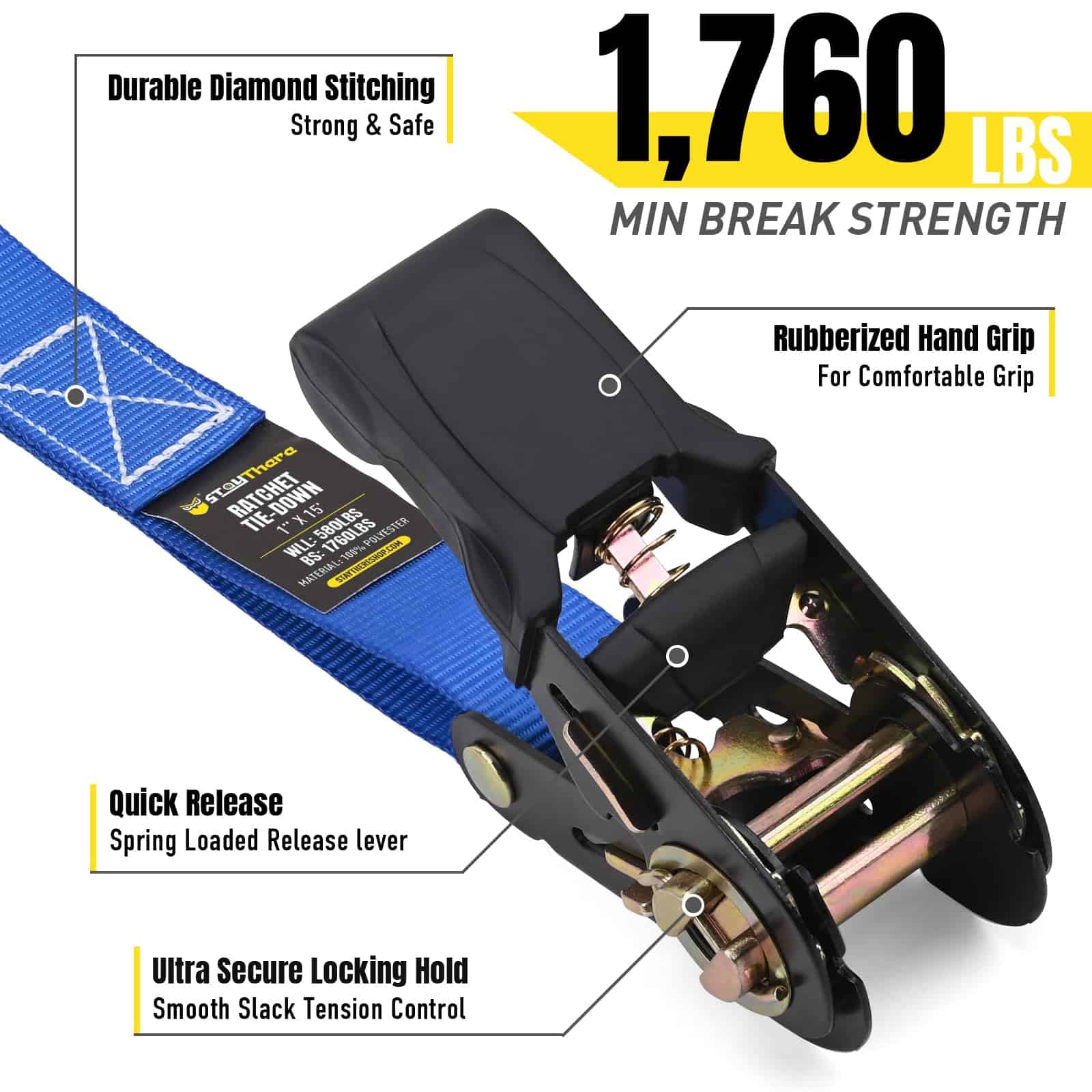 Stay There Ratchet Tie Down Straps 1» x15′, Cintas con