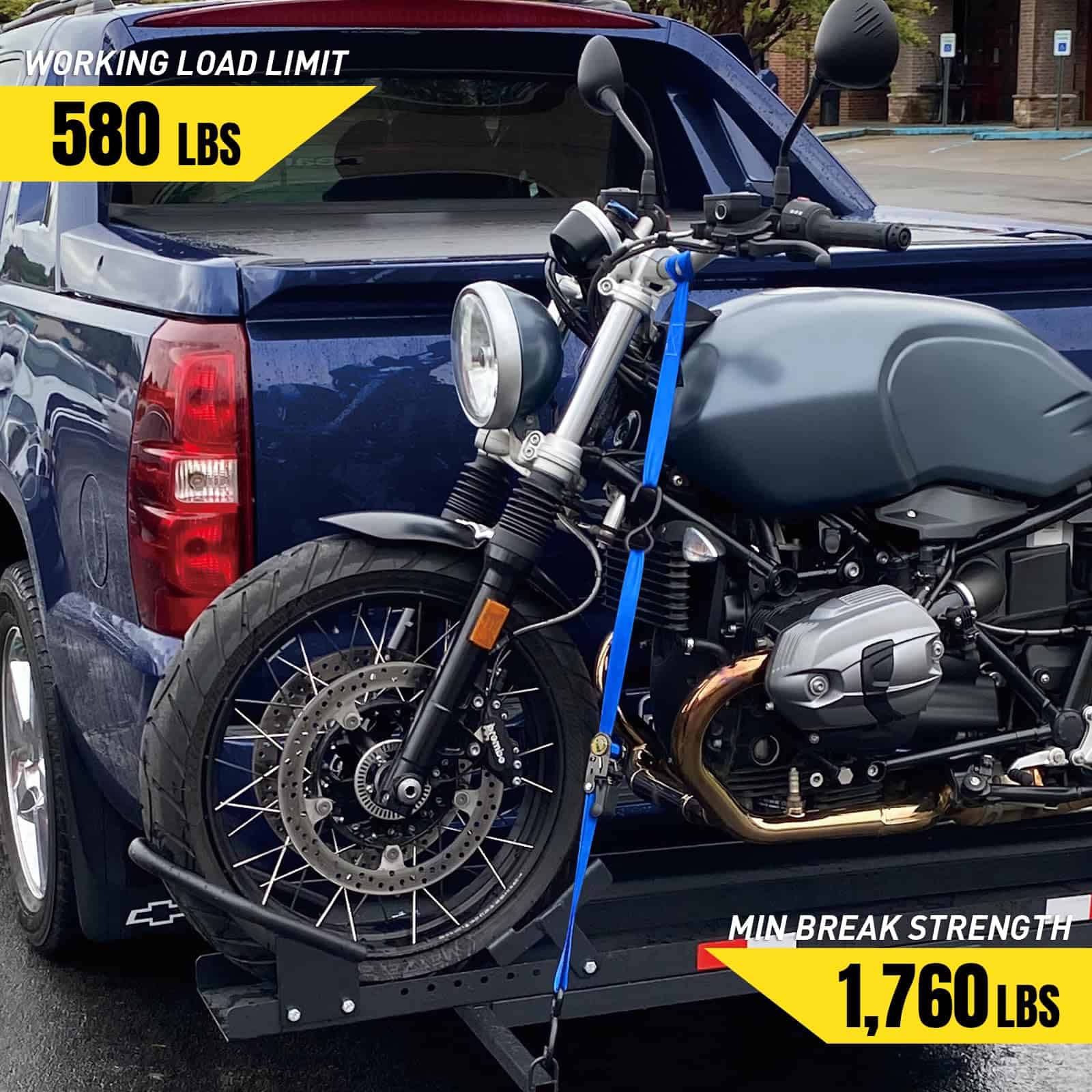 4. PESTILLO DE LIBERACIÓN RÁPIDA PARA UN CIERRE RÁPIDO DE 1″ La cinta flexible se adapta y se bloquea instantáneamente en su lugar. Cuando esté listo para descargar, tire de los mangos negros de resorte cargado suave para una liberación suave y rápida. Una excelente elección para mudanzas, jardineros, navegantes, entusiastas de deportes extremos, campistas, constructores, remoción de árboles y remolque.