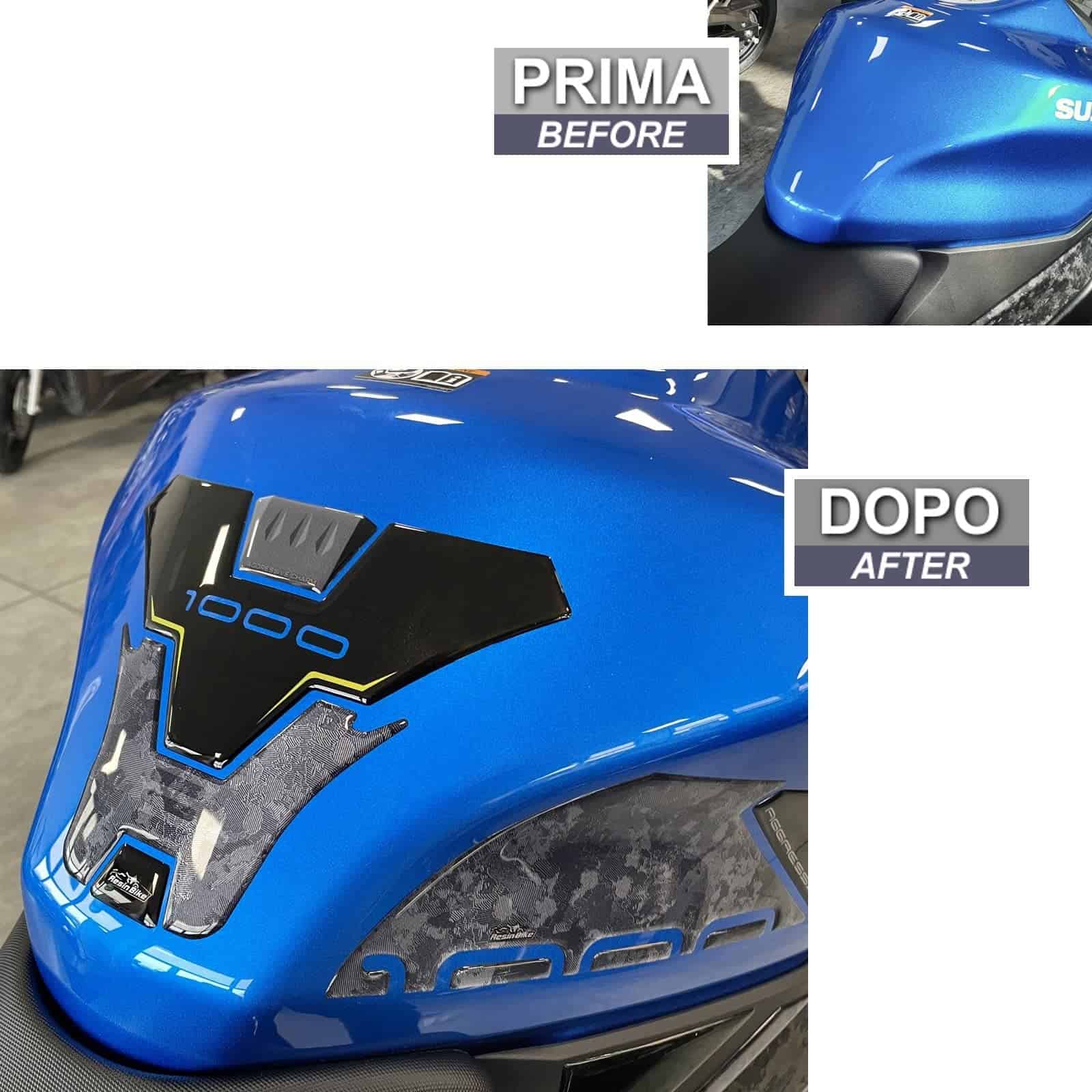 Resin Bike ofrece stickers de motocicleta de alta calidad diseñados y probados para brindar un alto rendimiento. Todos los stickers son HECHOS EN ITALIA y están diseñados para decorar y proteger tu moto de arañazos, golpes y condiciones climáticas adversas. Los stickers de Resin Bike realzan la estética de tu moto con estilo y personalidad. La empresa se especializa en la creación de llaveros, gráficos adhesivos de resina con efecto personalizado en 3D para proteger y decorar scooters, motos de carretera y motos de campo. El equipo de diseñadores gráficos, apasionados por las dos ruedas, crea constantemente nuevas creaciones para ofrecerte una amplia gama de accesorios de motocicleta de calidad con gráficos únicos. Resin Bike utiliza técnicas de impresión de alta definición y una impresión digital a cuatro colores con colores brillantes de alta calidad que no se desvanecen con el tiempo gracias a un tratamiento especial por el cual la resina utilizada se convierte en un filtro contra los rayos UV. Para garantizar una buena adhesión del producto, Resin Bike recomienda lavarse las manos con jabón antes de la aplicación, limpiar la superficie de la moto con un paño suave y limpio y seguir cuidadosamente las instrucciones de aplicación. Los stickers son fáciles de aplicar y se adhieren firmemente a la forma de la moto, evitando burbujas de aire y acciones de pegado y despegado que podrían comprometer la estanqueidad del pegamento con el tiempo. Dale a tu moto un toque de estilo y personalidad con los stickers de motocicleta de Resin Bike