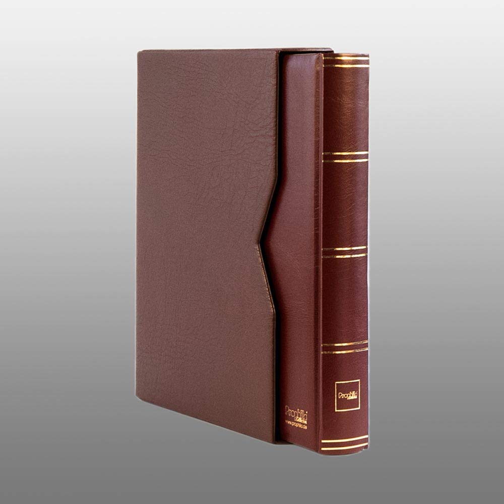 Stockbook de lujo para sellos con 60 páginas blancas acolchadas, 9 tiras de cristalina por página, 2 intercalados de cristalina por hoja, todas las páginas con encuadernación de doble bisagra estable, adornos decorativos en oro, cubierta de piel de lujo. Formato: 9 x 12 pulgadas (23 x 30.5 cm). Nota: Estás adquiriendo un producto valioso de Prophila. Estuche con asa empotrada para facilitar su manipulación. Diseño de alta calidad con aspecto y textura de piel. Forma adaptada a las crestas de los álbumes a ser alojados. En armoniosa combinación de colores con los álbumes correspondientes. Protege contra el polvo y la luz dañina. Estabilidad de los álbumes en el estante. Protección durante el transporte – evita que las marcas se caigan. Tamaño exterior: altura: 32 cm, ancho: 24 cm, profundidad: 5.5 cm. Formato interior: Altura: 31 cm, Ancho: 23 cm, Profundidad: 4.8 cm.