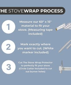 Eleva tu experiencia de cocina en RV, camping, o barco con el Protector de Estufa RV y Liner de Horno de Stove Wrap, la solución versátil para una cocina limpia y protegida sobre la marcha. Este material personalizable de Cubierta/Protector de Estufa está diseñado para adaptarse a cualquier estufa de camping, RV o barco, asegurando que te despidas de marcas, arañazos y desorden quemado difícil de limpiar. Fabricado con material de Fibra de Vidrio con Recubrimiento de Teflón antiadherente, no inflamable y resistente al calor, este protector se limpia fácilmente con agua y jabón o se puede colocar en el lavaplatos para un mantenimiento sin complicaciones. El kit de Stove Wrap incluye un material de 60 x 15″, un cortador circular para agujeros de quemadores precisos, un marcador blanco, una cinta métrica e instrucciones paso a paso, lo que te permite crear el protector y protector de horno perfectamente ajustado. También puedes utilizar nuestro material para varios electrodomésticos como hornos de convección, hornos tostadores, microondas, freidoras de aire, parrillas de interiores y más. Protege tus electrodomésticos de cocina de goteos, derrames y salpicaduras, y disfruta de la conveniencia de una superficie de cocina y horneado antiadherente para parrillas (de gas, propano o eléctricas). El material protector de Stove Wrap está aprobado para el contacto con alimentos, libre de BPA/PFOA y diseñado para durar, ofreciendo una solución eficiente y reutilizable para los años venideros. Ten en cuenta que no uses el protector sobre parrillas de carbón o madera debido a las limitaciones de temperatura. Actualiza tu cocina móvil con Stove Wrap y abraza una aventura de cocina más limpia y agradable dondequiera que estés.