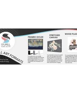 Orgullosamente fabricado en EE. UU., Nuestro lienzo estirado se crea con los más altos estándares. Solo utilizamos las tintas y lienzos de más alta calidad en nuestras impresoras Mimaki internas, y luego cortamos a mano y estiramos cada pieza sobre un marco de madera de 1.5 pulgadas de grosor para colgar. El arte viene listo para colgar sin necesidad de instalación.
