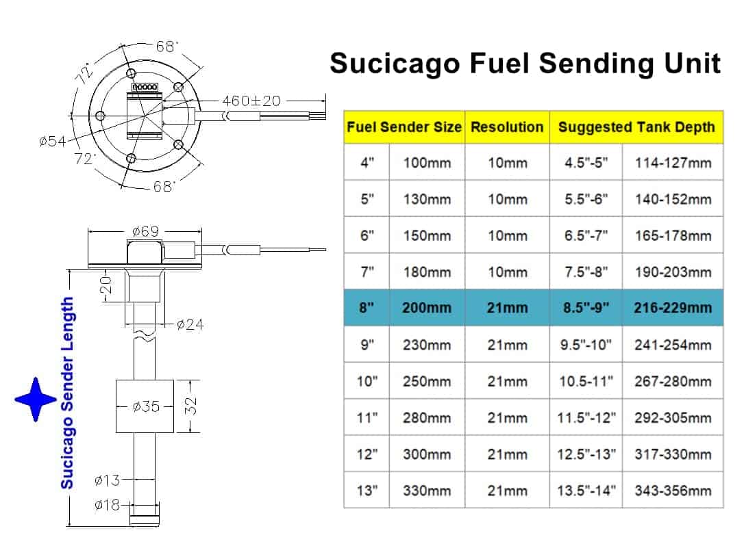 Sucicago Fuel Level Sender 0-190 ohms 8″(150mm) Sensor de