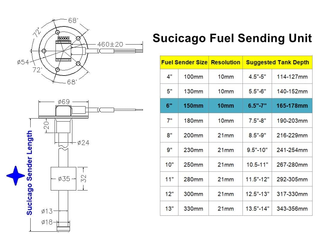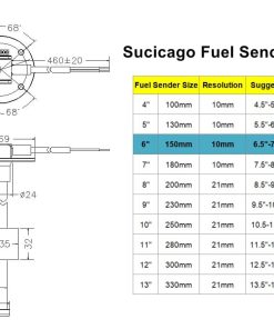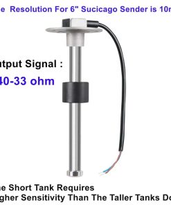 La unidad de envío de tanque de combustible de acero inoxidable de Sucicago es mucho más precisa y confiable que el antiguo sistema de brazo y flotador. El cliente puede comprarla junto con un medidor de nivel de combustible o de nivel de agua de Sucicago. Están diseñadas para monitorear el nivel de combustible, diésel, gasolina o agua en el tanque.