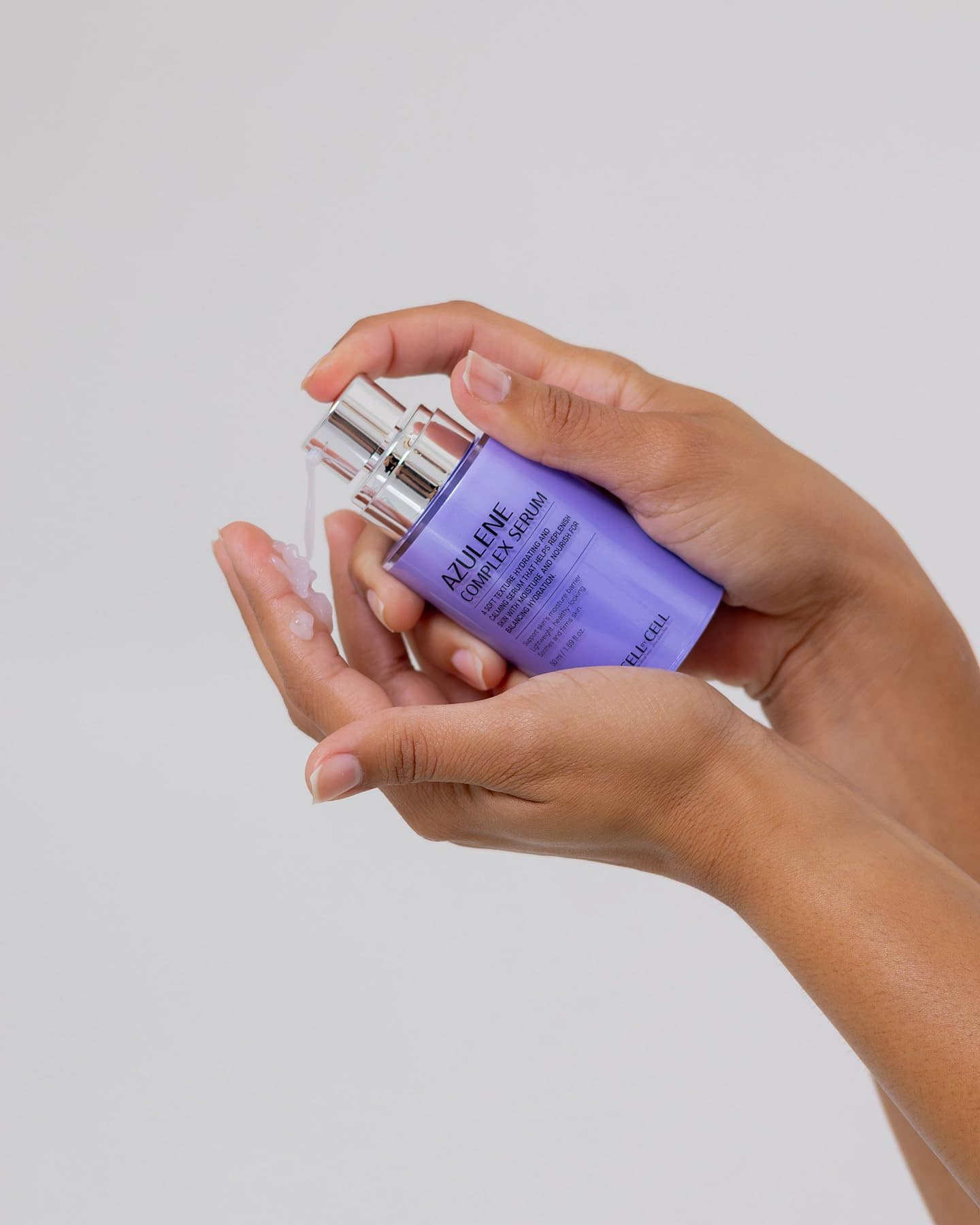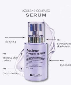 Cuidado natural y limpio para la piel con ingredientes seguros y transparentes. Nuestros productos no contienen aditivos de pigmentos en el producto. Este suero complejo de azuleno está diseñado para calmar, hidratar y rejuvenecer la piel. La exclusiva mezcla de ingredientes clave trabaja juntos para impulsar la producción de colágeno, reparar la barrera de la piel y absorberse rápidamente en la piel. Bajo la mirada vigilante de CellByCell Cosmetics, hemos creado un género único de productos de cuidado de la piel llamados Cosméticos Botánicos. Esta armonía de la flora natural y la ciencia celular no es solo una rutina, sino un ritual que da vida a cada célula de la piel para disfrutar de la calidad del spa en la comodidad de tu propio hogar.