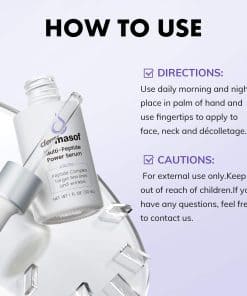 El Suero de Péptidos Multi Poder para Rostro de Dermasof es una combinación potente de 8 tipos de péptidos diseñados para ayudar en la lucha contra el envejecimiento de la piel. Con 5 tipos de péptidos antienvejecimiento que mejoran la estructura dérmica, promueven la regeneración del colágeno y mejoran la apariencia de las líneas finas y arrugas. Además, 3 tipos de péptidos reparadores fortalecen la capa barrera de la piel, mejoran su capacidad portadora y potencian la eficacia general del producto.