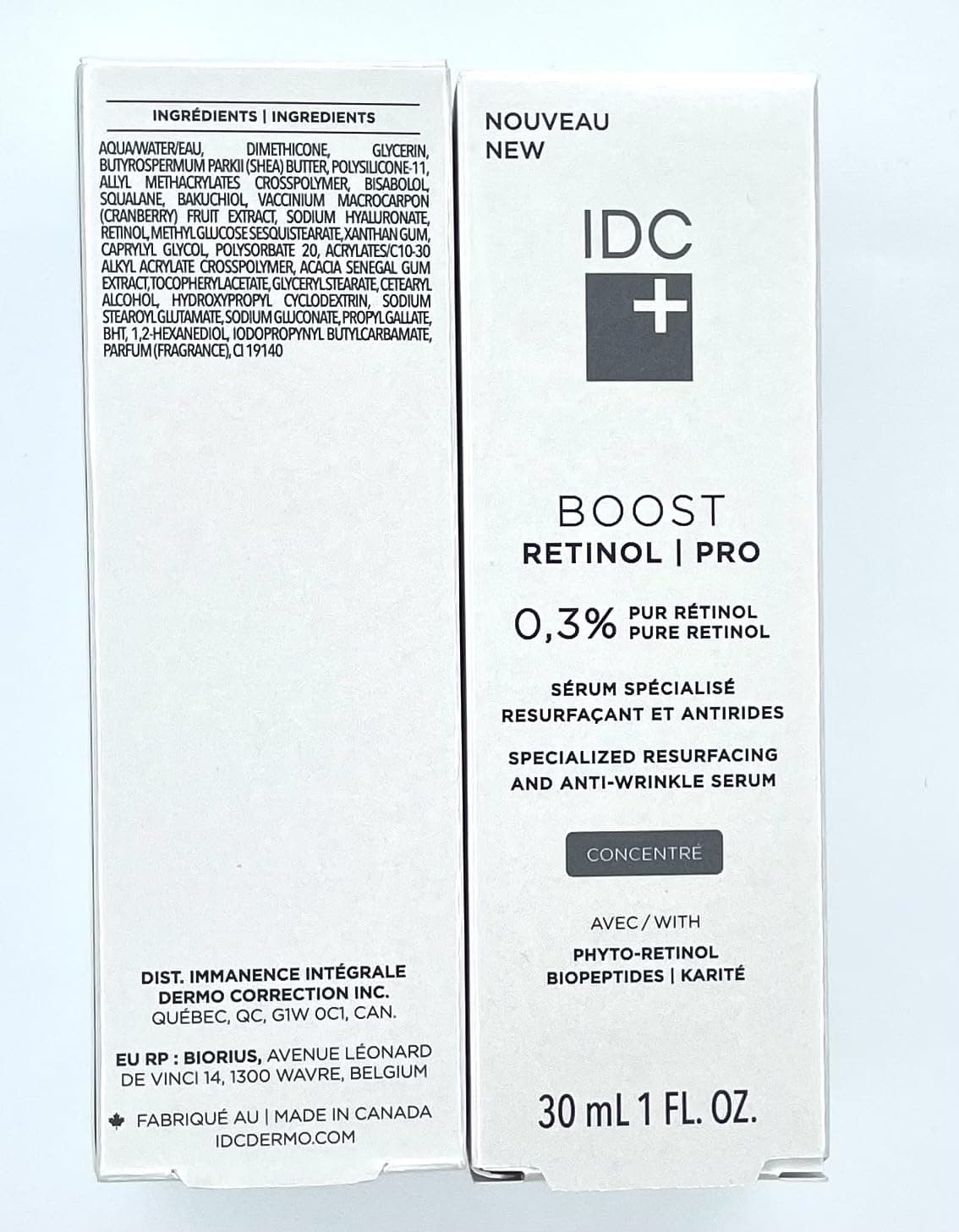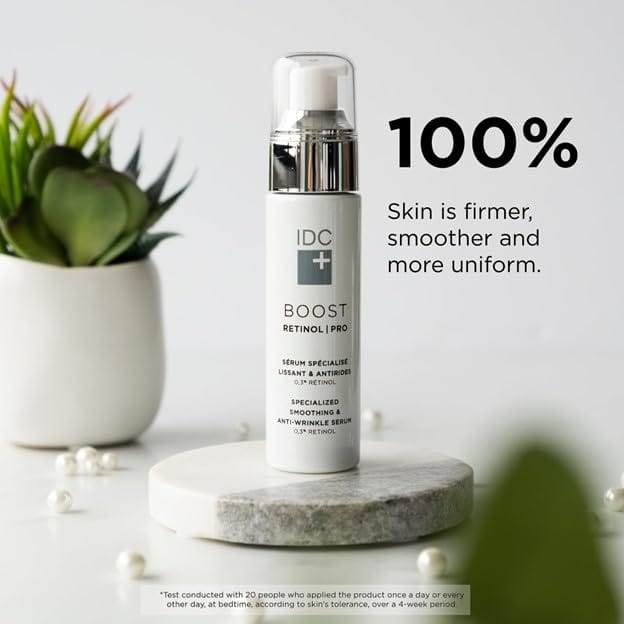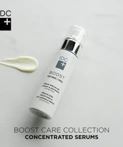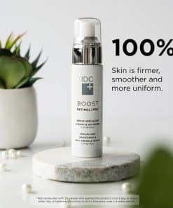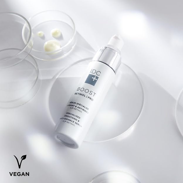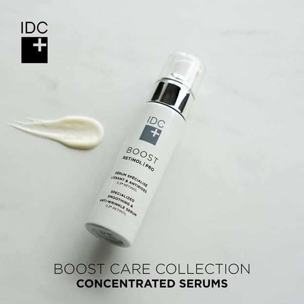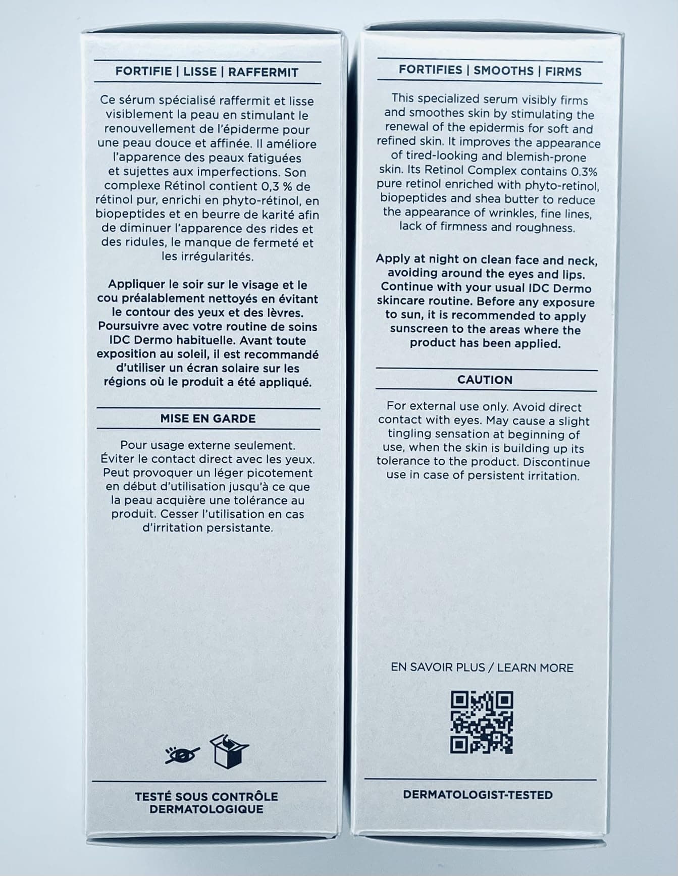 Este suero nocturno para la cara de IDC Dermo Boost Retinol Pro proporciona beneficios notables para un cutis radiante. Suaviza irregularidades como poros agrandados, rugosidades, cicatrices de acné y manchas. Al renovar la capa epidérmica, el suero nocturno de retinol firma eficazmente la piel y reduce la apariencia de arrugas y líneas finas mientras combate el daño causado por el fotoenvejecimiento. En tan solo 15 días de uso regular, las líneas finas y arrugas desaparecerán, revelando un cutis radiante.