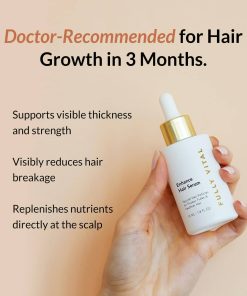FullyVital Enhance Hair Growth Serum es un suero experto para el crecimiento del cabello respaldado por la ciencia, diseñado para reducir la caída del cabello, apoyar el engrosamiento del cabello y promover el crecimiento del cabello. Contiene ingredientes poderosos como biotina, cafeína, centella y péptidos que ayudan a fortalecer y nutrir el cuero cabelludo para un cabello más sano y completo.