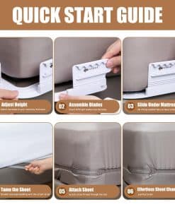 5. Sin vueltas mágicas – ¡Se instala en 10 segundos! Sin esfuerzo, sin vueltas. Desliza la base de nuestro bloqueo Pro de sábanas bajo las esquinas del colchón y listo. Perfecto para camas pesadas (¡sin tener que levantarlas!), personas mayores/configuración individual (¡no se necesita fuerza!) y arreglos de última hora (¡funciona en camas hechas!). ¡Abandona los viejos agarres que exigen piruetas en el colchón. Los nuestros se adhieren, bloquean y olvidan!