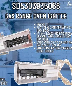 2. 120 voltios | Encendedor de estilo plano con cuerpo de 3-3/4 pulgadas y cables de 17 pulgadas | Conectores de cable cerámicos de alta temperatura incluidos | Utilizado con válvulas de seguridad de gas valoradas entre 3.2 y 3.6 amperios | No sobrecargará la válvula de gas | Escudo de acero inoxidable de alta temperatura | Se adapta a rangos específicos de modelos.