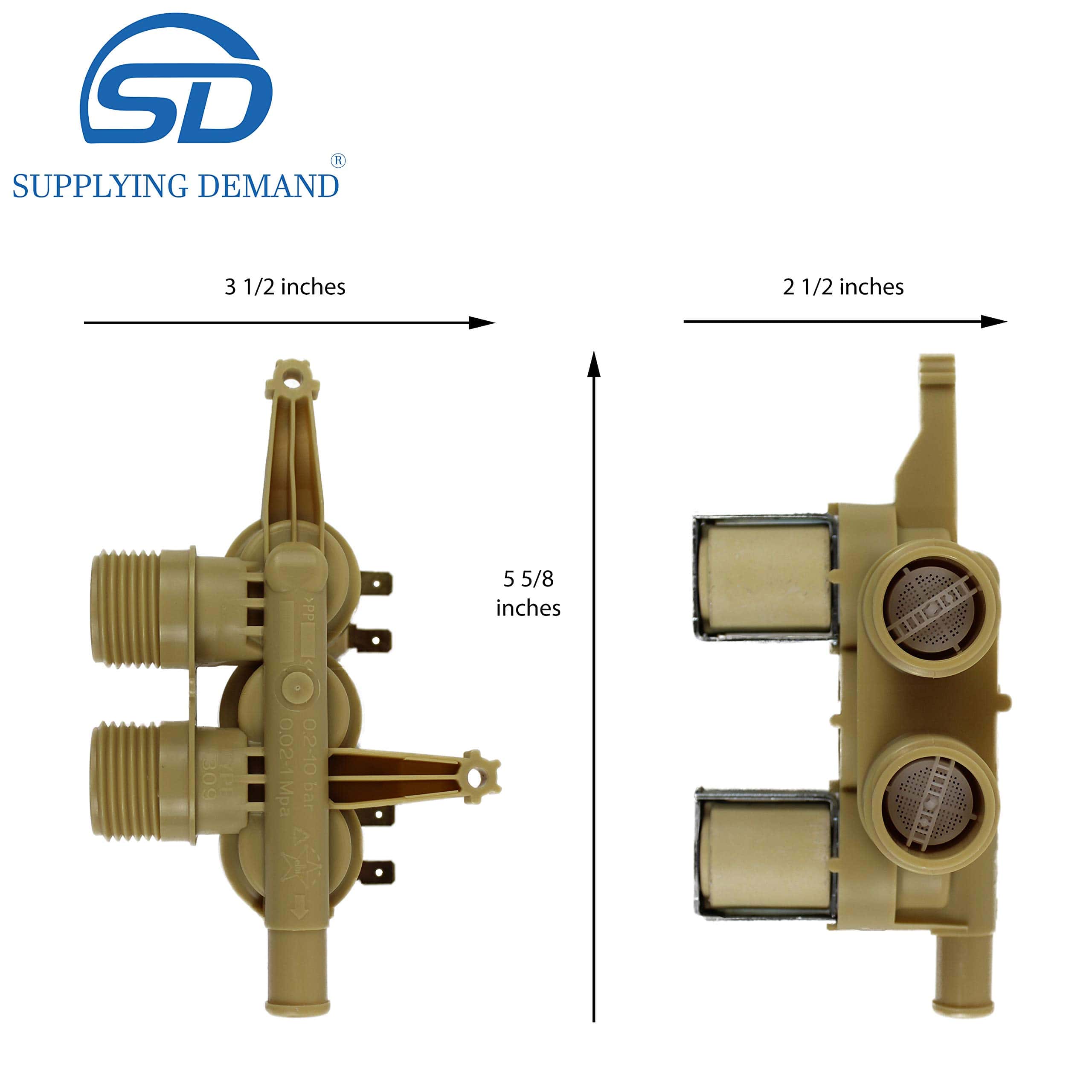 Este es una válvula de entrada de agua para lavadoras de ropa. Los números de parte alternativos incluyen AP5985821 y PS11721803. Es importante desconectar su lavadora de ropa de la energía y el suministro de agua antes de realizar el servicio. Las piezas de repuesto de Suministro de Demanda son compatibles con las principales marcas, pero siempre debe verificar la adaptación con su modelo específico. Hemos incluido un video en la galería del producto para ayudarlo a encontrar su número de modelo e información en la descripción a continuación. Los productos de SD vienen en empaques de Suministro de Demanda.