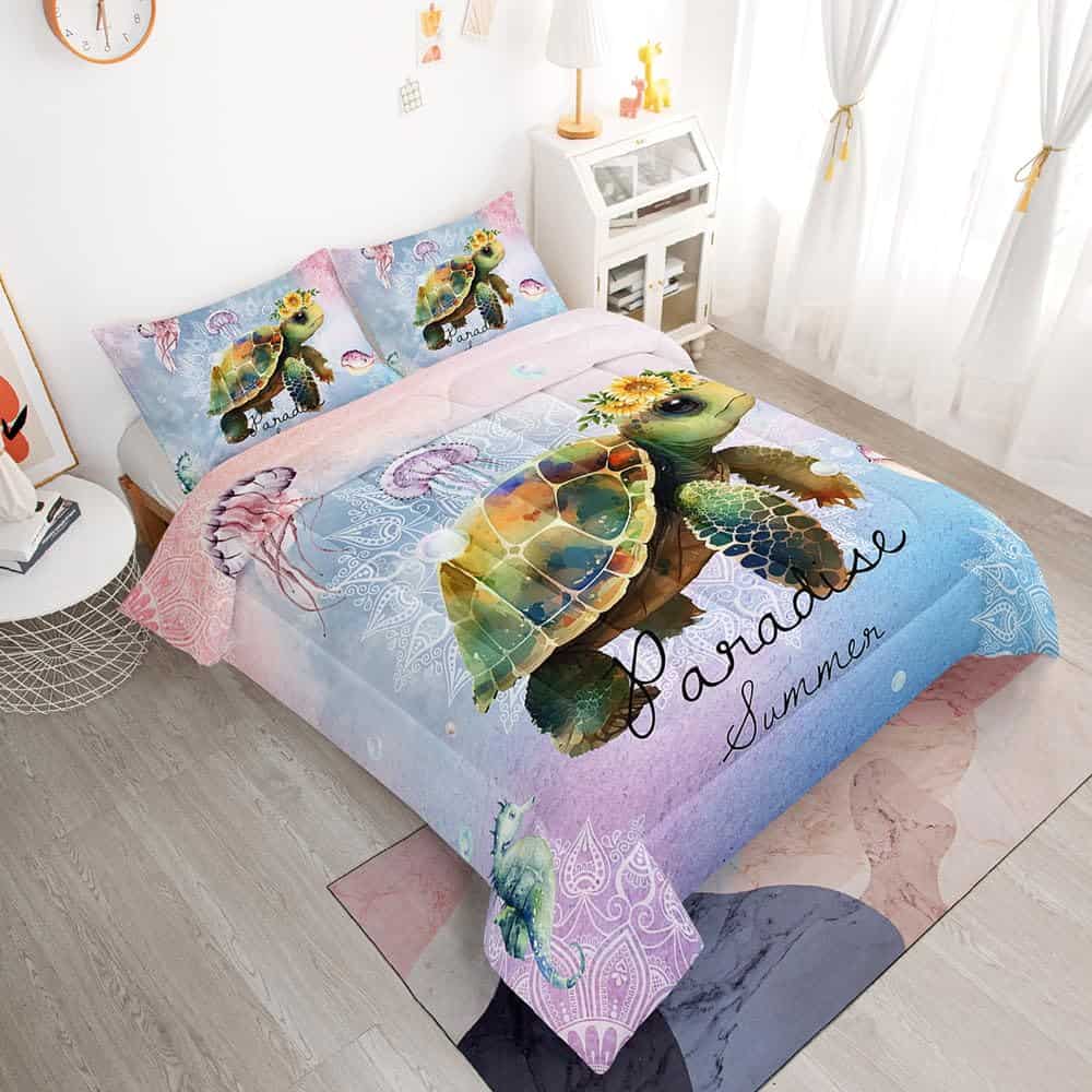 Esta colección de juegos de edredón con un diseño único de patrón de vida marina submarina