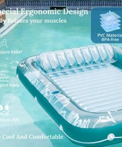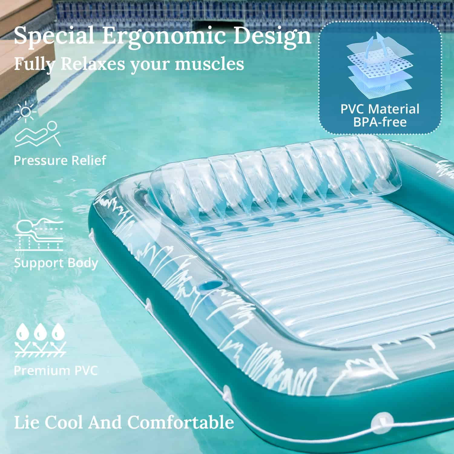 Disfruta del verano en este Sunrio 2024 Upgrade Tanning Pool X-Large V3 transparente en color verde. Este tumbona inflable está construido con materiales de alta calidad que garantizan una durabilidad duradera. Su diseño estable y seguro lo mantiene fijo en superficies acuáticas, brindándote una experiencia de bronceado sin preocupaciones. Las costuras reforzadas proporcionan mayor resistencia y soporte, mientras que la almohada incorporada ofrece un soporte adicional para tu cuello y cabeza. Además, su fácil mantenimiento permite una limpieza sencilla con jabón suave y agua. ¡Prepárate para relajarte y disfrutar del sol con este Sunrio Upgrade Tanning Pool X-Large V3!