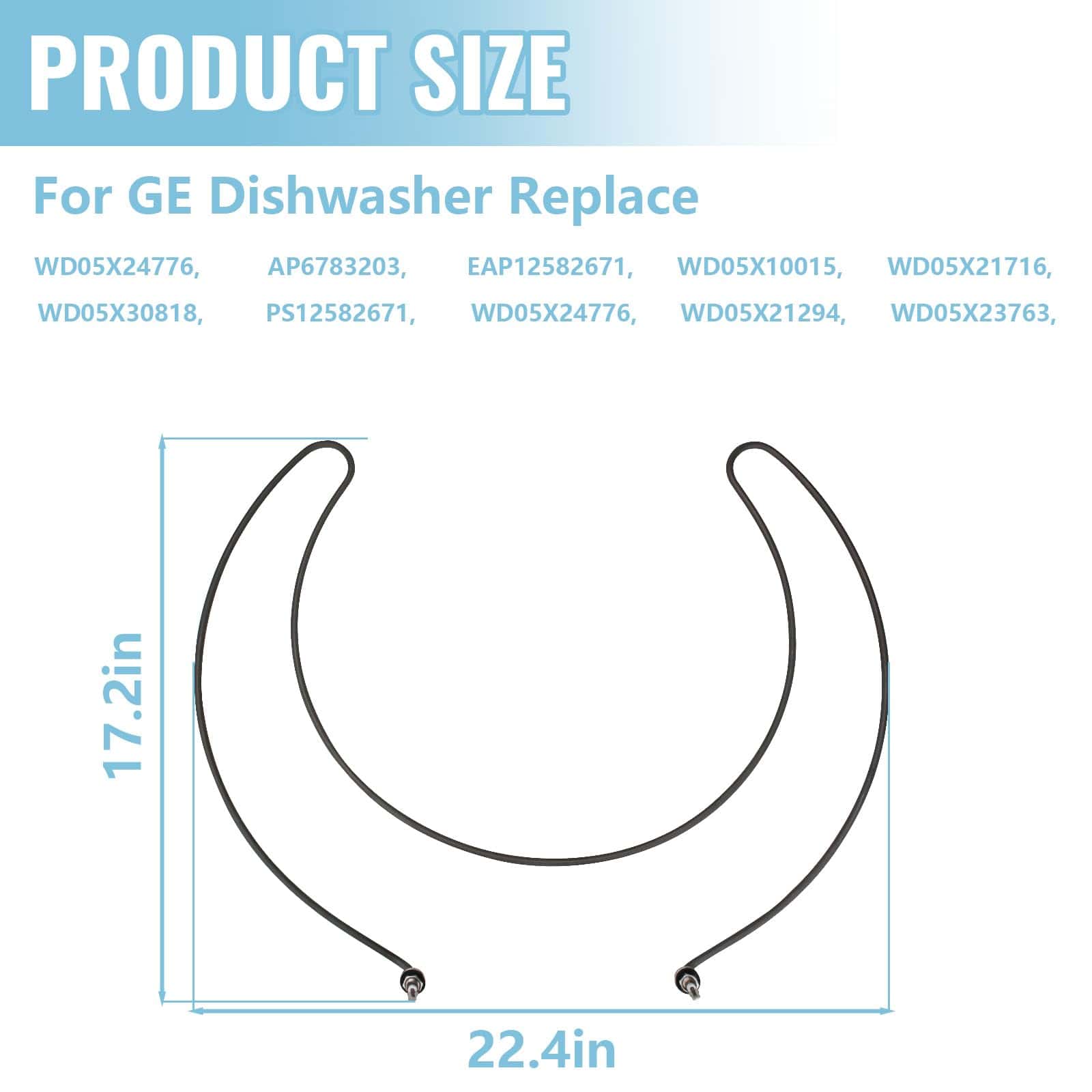 Con dimensiones de 17.2 «de longitud y 22.4» de ancho, este elemento calefactor es compatible con una variedad de modelos de lavavajillas GE, como GDF510PGD1WW, GDF510PGD2BB, GDF510PGD2WW, GDF510PGJ4BB, GDF610PSJ6SS, GDF620HGJ4BB, GDF620HGJ4WW y muchos más.