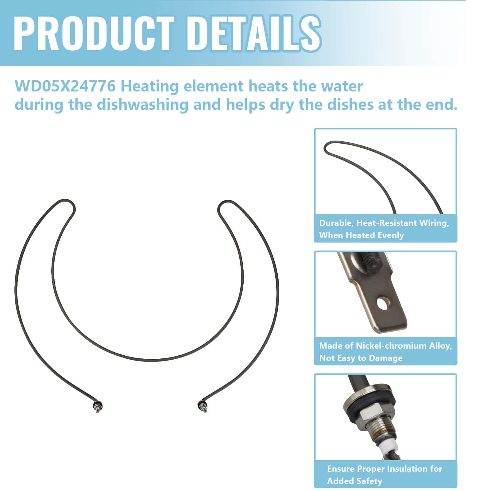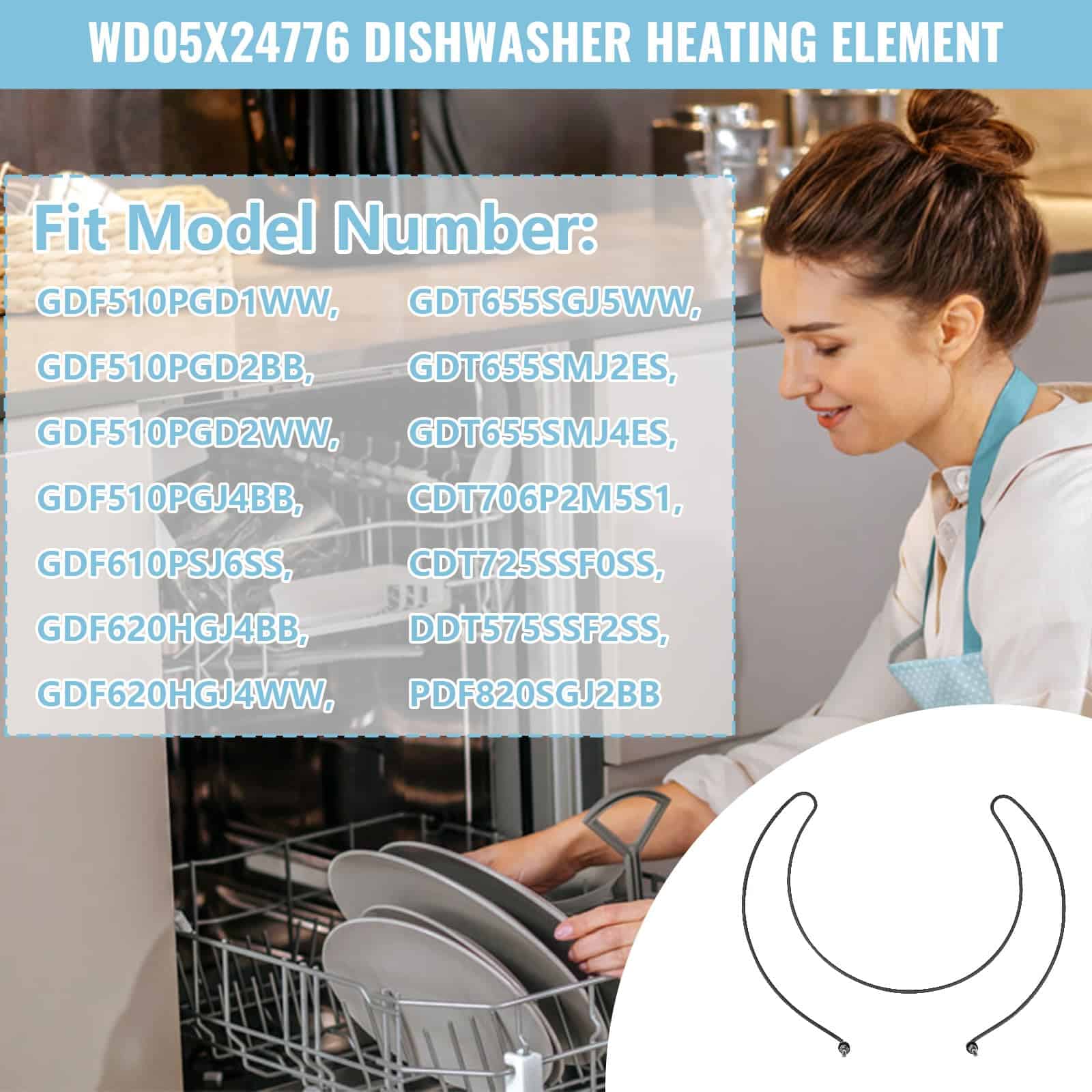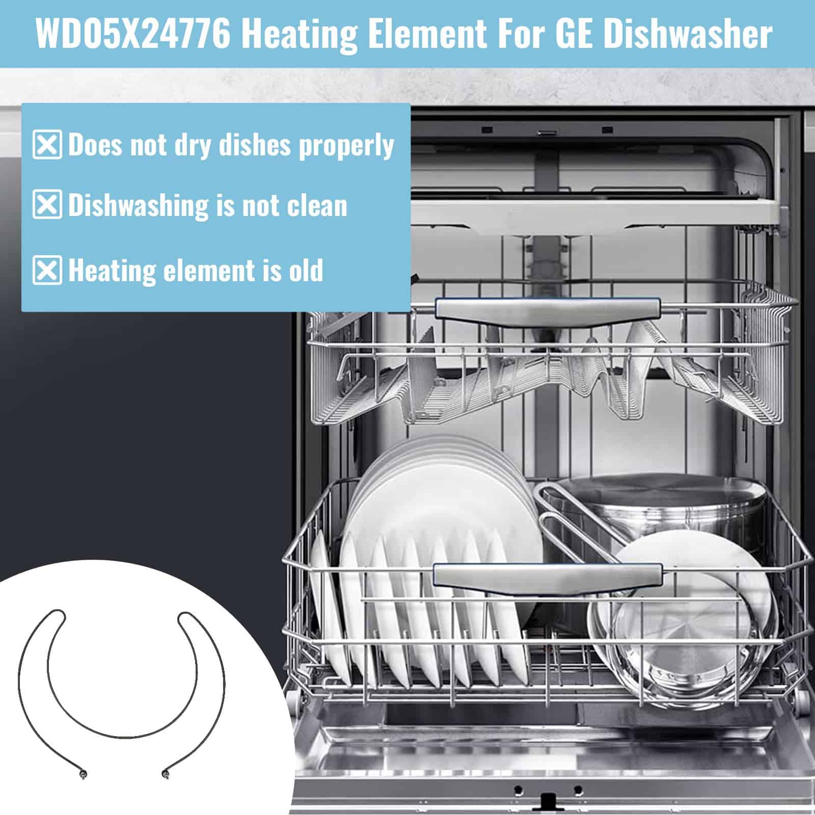 El elemento calefactor para lavavajillas superbobi WD05X24776 es la pieza de repuesto perfecta para los lavavajillas GE. Reemplaza los números de parte WD05X23763, Wd05x10015, Wd05x21294, Wd05x201716, Ap6783203, Ps12582671 y más.