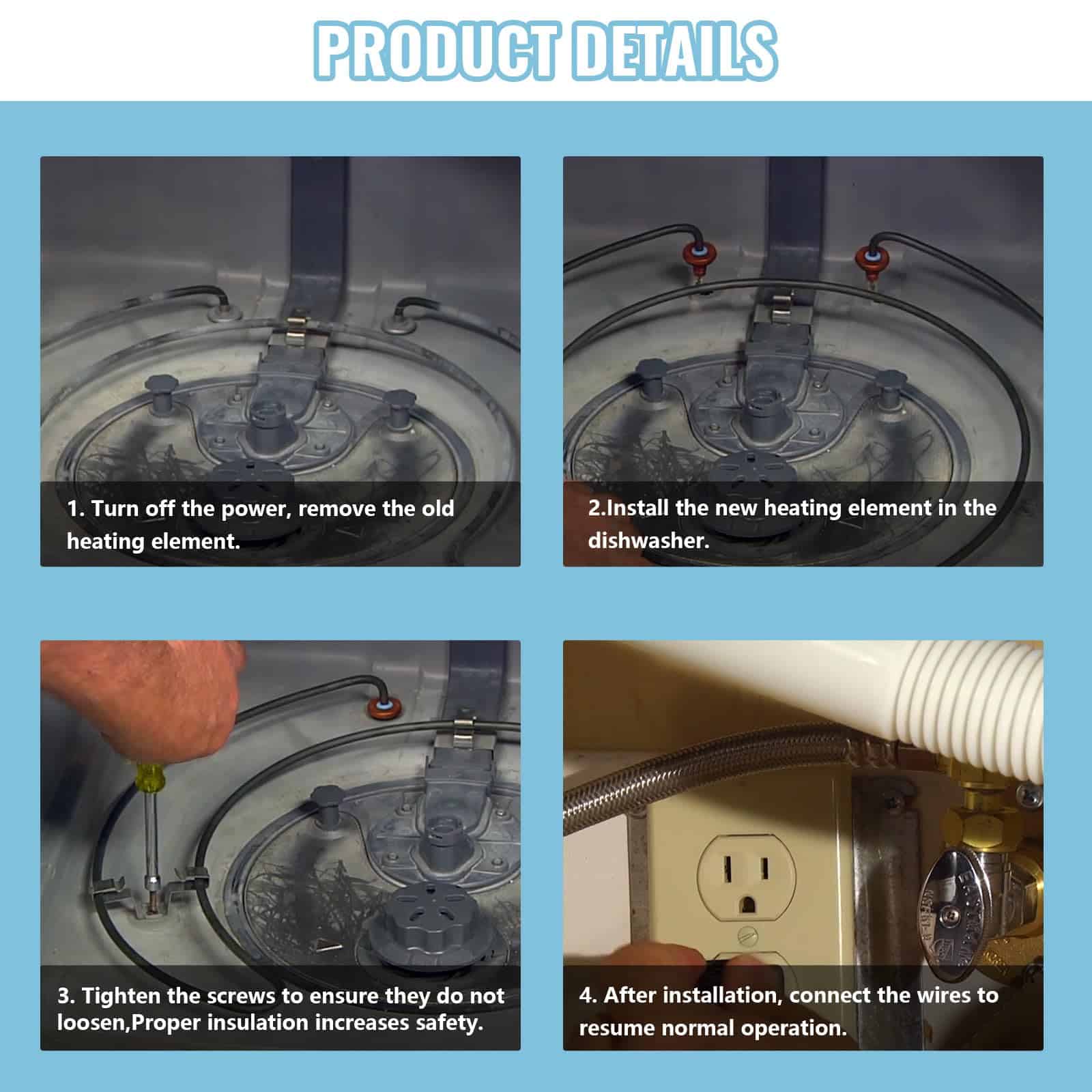Su instalación es sencilla y segura, calentando el agua durante el ciclo de lavado y ayudando a secar los platos al final del ciclo sin fugas. Se incluye 1 elemento calefactor para lavavajillas WD05X24776 en el paquete. Si tiene alguna pregunta o inquietud, no dude en contactarnos para brindarle una solución satisfactoria.
