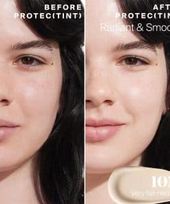 Una ligera cobertura para la piel se encuentra con un potente SPF 50 con cobertura ligera y construible y un acabado natural. La cobertura mezclable deja la piel con un aspecto suave y uniforme de inmediato mientras proporciona protección SPF 50 sin dejar un efecto blanco visible. Disponible en 14 tonos flexibles, esta fórmula es resistente a la formación de arrugas y no se asienta, formulada con un 83% de ingredientes para el cuidado de la piel para un aspecto más radiante y una textura más suave con el tiempo, incluso sin maquillaje. Resultados clínicos: 100% de las personas están de acuerdo en que este producto se siente cómodo y no pueden creer que tenga SPF 50! El 95% de las personas están de acuerdo en que este producto se aplica y se mezcla sin esfuerzo. El 95% de las personas están de acuerdo en que su piel parece inmediatamente más saludable. Ingredientes destacados: el Ectoin defiende del estrés oxidativo causado por la luz azul, la radiación y la contaminación. La Arcilla Infundida con Ácido Hialurónico equilibra los niveles de hidratación y sebo de la piel. El SPF 50 híbrido de amplio espectro protege contra los rayos UVA y UVB. Cómo usar: Aplica Protec(tint) y mezcla uniformemente con los dedos, una esponja o una brocha. Deja que el producto se fije durante 30 segundos. Aplica otra capa para una mayor cobertura. Vuelve a aplicar al menos cada dos horas o inmediatamente después de nadar o sudar.