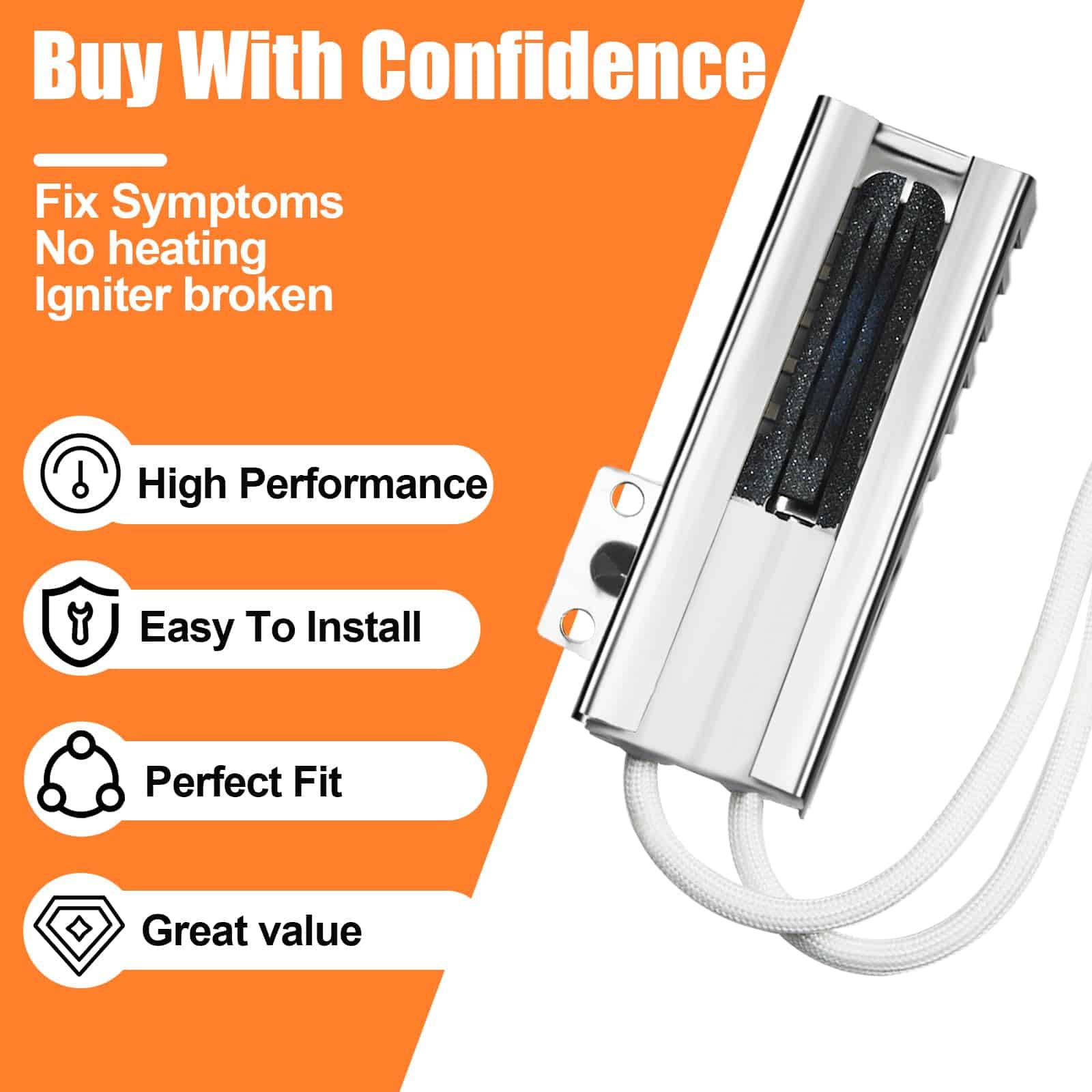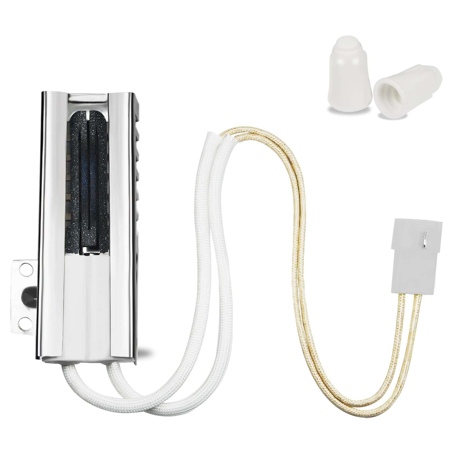 Este sustituto de encendedor de horno de gas es compatible con una variedad de marcas, incluidas Whirl-pool, A-mana, E-state, Ro-per, May-tag, M.agic-Chef, I-kea. Con un fácil reemplazo, puede instalarlo en pocos pasos sin necesidad de experiencia previa. El encendedor es extremadamente sensible al aceite de las manos, por lo que se recomienda no tocar la parte de encendido gris al instalarlo. Si recibe el artículo dañado, contáctenos rápidamente para un cambio o reembolso completo. Este producto garantiza una compatibilidad amplia y una fácil instalación para una experiencia sin problemas.
