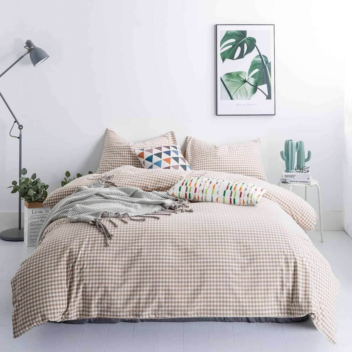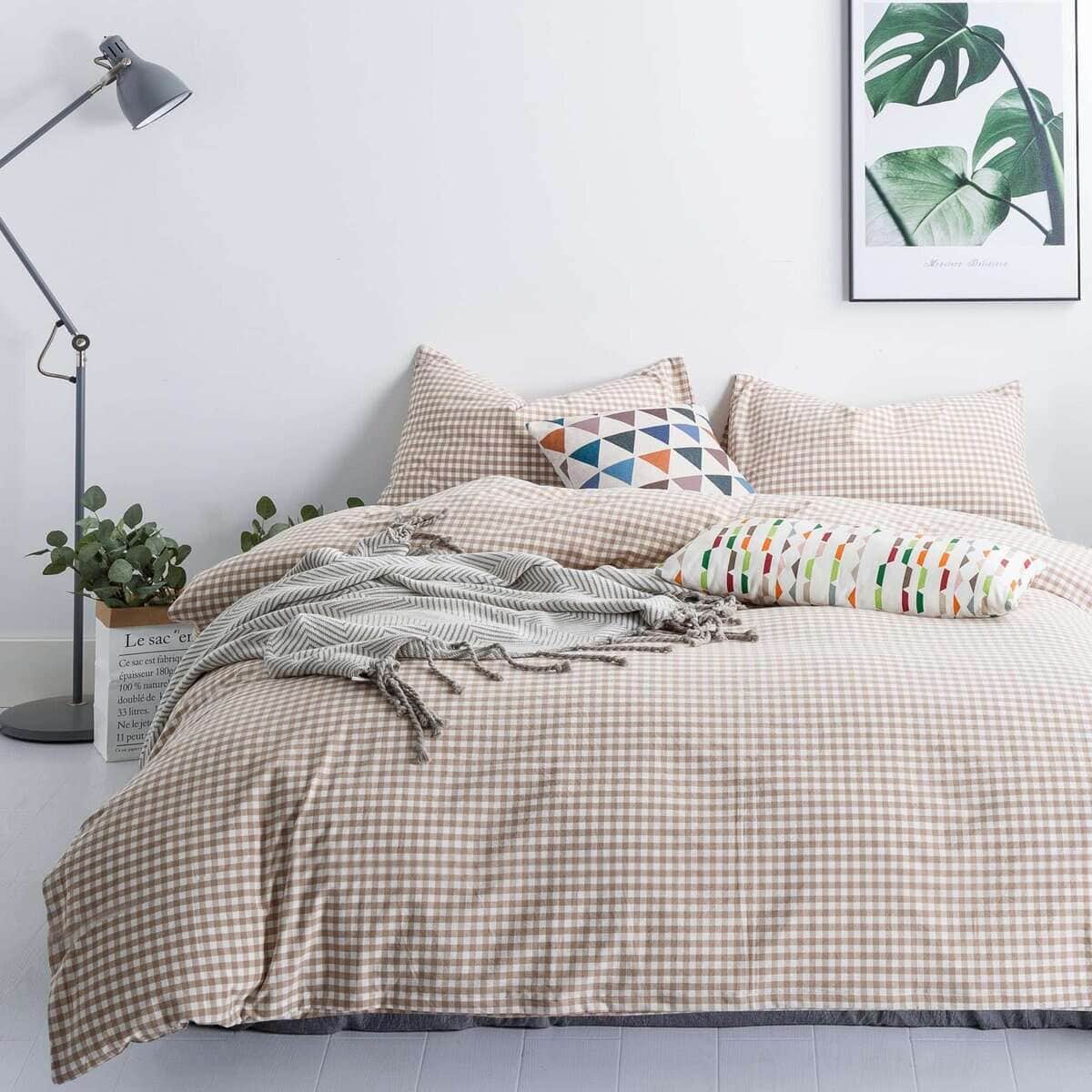 SUSYBAO Juego de Funda Nórdica King de Gingham Beige 100%