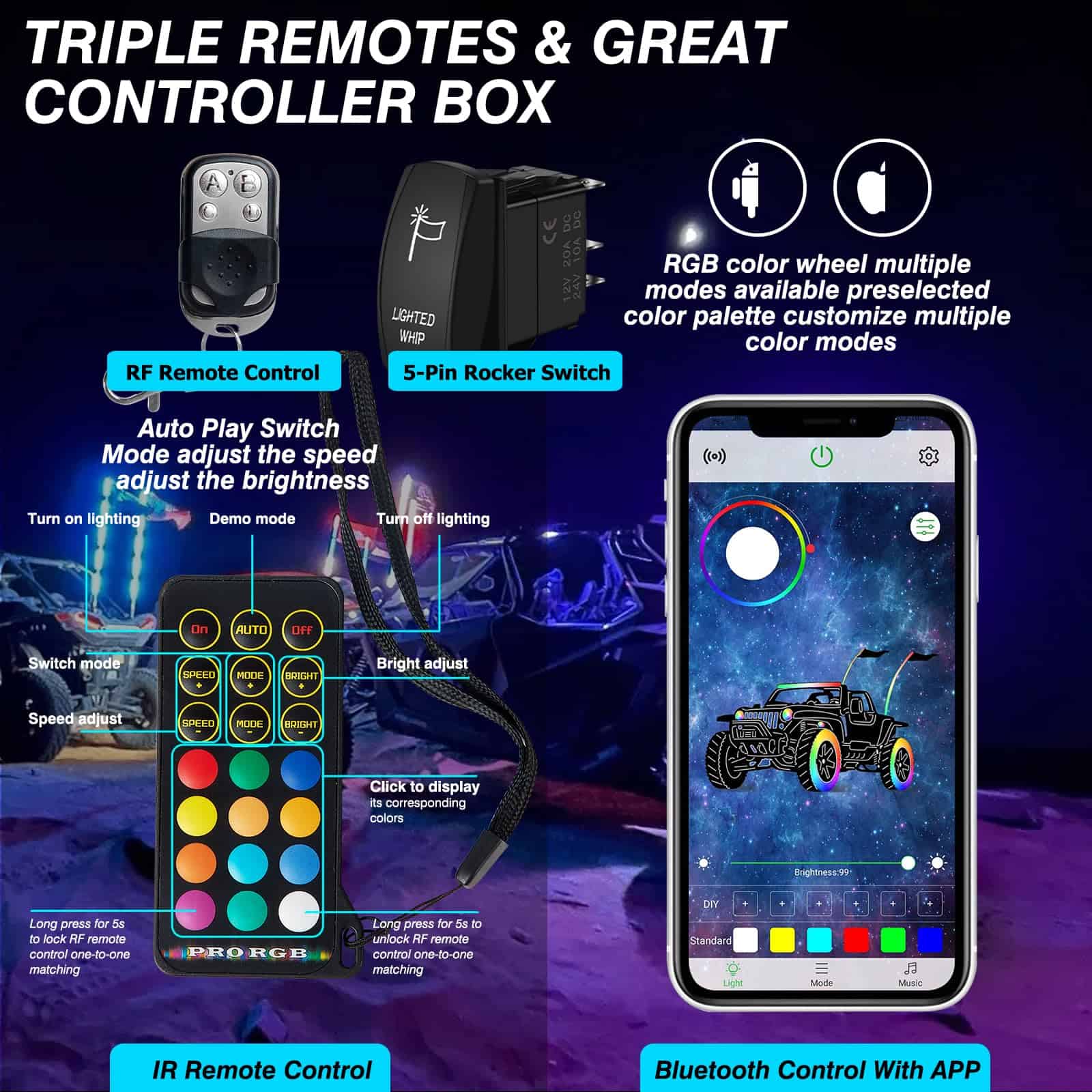 2. DISEÑO GENIAL: Chips LED súper brillantes y duraderos, que producen múltiples cambios de color y persecuciones de color para iluminar la noche. Más de 300 patrones llamativos, incluidos los efectos de persecución, estroboscópicos, apilados e incluso de iluminación secuencial. Los 32 brillos y 10 ajustes de velocidad pueden darle a su automóvil un aspecto elegante y captar fácilmente la atención de otros. ¡Luces LED de persecución para una máxima densidad de luz más brillante! Se puede utilizar como luz de giro R y L / luz de freno / luz de reversa, manteniéndolo seguro y destacándose.