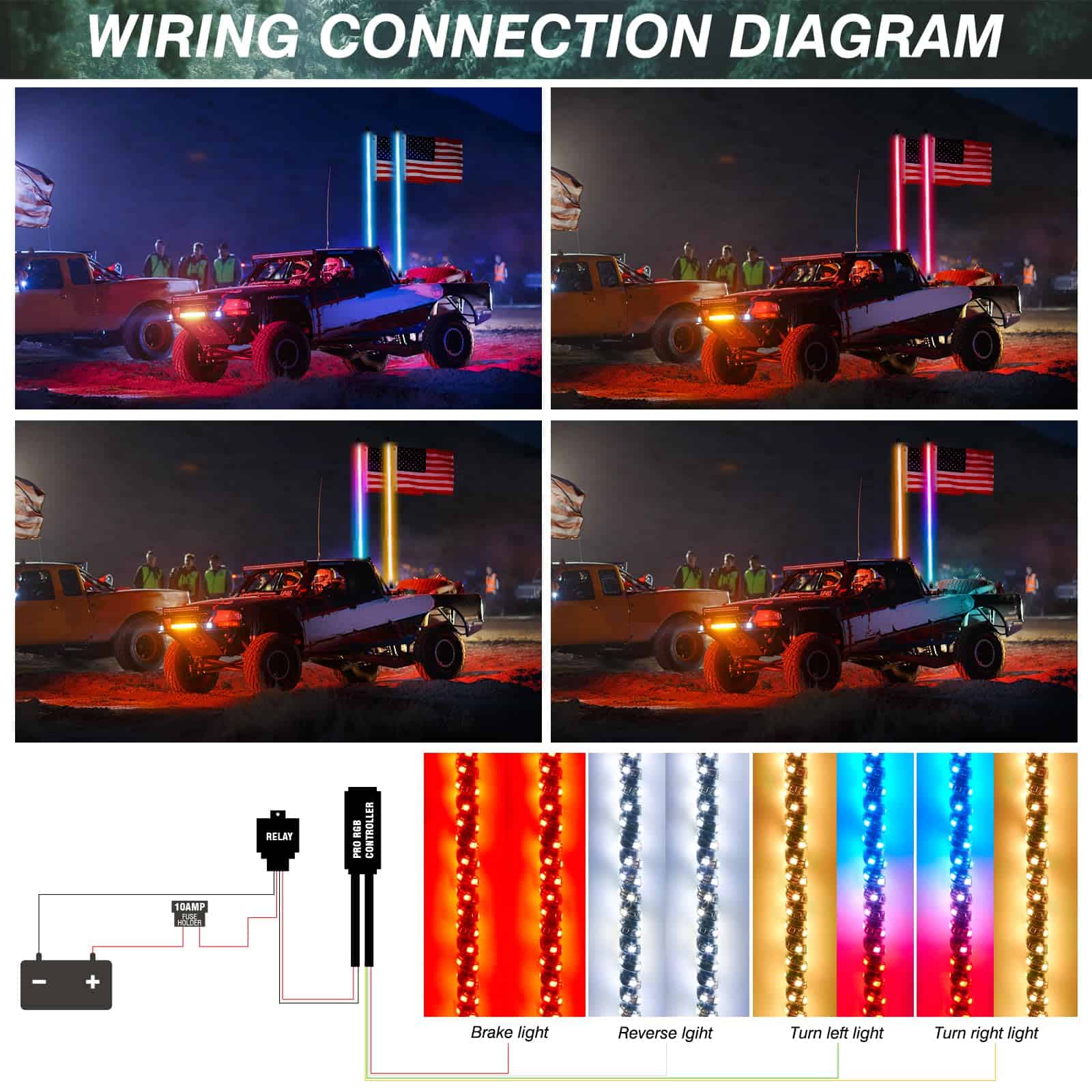4. LIBERACIÓN RÁPIDA Y FÁCIL CONECTAR Y ENCHUFAR: La luz en espiral cuenta con una construcción de bloqueo Plug N Play NUEVO DISEÑO, simplemente afloje rápidamente la base del resorte, Instálelo rápidamente con liberación rápida y conecte la base a la luz en espiral. Nota: Vea las pautas de conexión del interruptor de palanca en el manual del usuario.