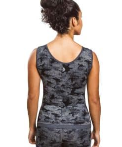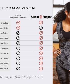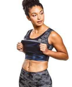 Sweat Shaper Chaleco de Entrenamiento Premium Sauna para Mujeres para Ejercicio en Gris Camuflaje. Sweat Shaper utiliza una tela de polímero que atrapa el calor para aumentar tu temperatura corporal natural y estimular la sudoración con cualquier tipo de actividad física. Usar Sweat Shaper mientras haces ejercicio o realizas actividades diarias crea una experiencia caliente tipo sauna. Tu temperatura corporal aumentará, lo que te hará sudar más. Gracias a la tela de compresión de capa superior especialmente diseñada de Sweat Shaper, instantáneamente lucirás más delgada y tonificada en el momento en que te lo pongas. Recogerá tu estómago, dará forma a tu cintura y acentuará tus curvas. Si buscas una sensación de estómago plano, cintura pequeña y figura de reloj de arena, Sweat Shaper es la ropa de entrenamiento ideal. En comparación con alternativas de neopreno de baja calidad, Sweat Shaper no huele, es más ligero, se seca más rápido y es lavable a máquina. Sweat Shaper ha sido diseñado para ser increíblemente ligero y cómodo de llevar incluso durante períodos prolongados. Se moldea y se mueve con tu cuerpo durante los entrenamientos en el gimnasio o haciendo mandados. Excepcionalmente flexible, con un respaldo estilo camiseta tradicional y soporte frontal de bajo corte para un sostén deportivo cómodo debajo. El material de polímero repele la humedad para secarse rápidamente y permanecer fresco para no sentirse húmedo por el sudor en exceso. La exclusiva mezcla de telas de Sweat Shaper ha sido especialmente seleccionada para crear la mejor camiseta de entrenamiento para mujeres en Advanced Sweatwear. Consta de dos capas: la tela interna de polímero termogénico aumenta tu temperatura central para promover la sudoración. La tela exterior de compresión de rendimiento instantáneamente adelgaza y da forma a tu figura. Terminado con una banda de cintura antideslizante para asegurar que se mantenga en su lugar y no se deslice en tu cuerpo, especialmente durante entrenamientos intensos. Estamos seguros de que Sweat Shaper es la mejor camiseta activa disponible hoy para mujeres. Como resultado, ofrecemos una garantía del fabricante. Si no estás 100% satisfecha con tu Sweat Shaper, simplemente envíanos un mensaje y reemplazaremos o reembolsaremos tu pedido. ¡Sin preguntas!