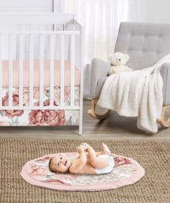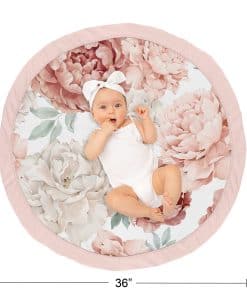 Tapete de actividades para bebés niña de Sweet Jojo Designs, ideal para el tiempo de boca abajo y jugar. Con un diseño boho chic shabby en tonos de rosa blush e marfil, con estampado de flores vintage de jardín de peonías y ribetes y bordes en rosa blush. Sus medidas de 36 pulgadas de diámetro lo hacen ideal para las actividades del bebé. Se pliega fácilmente para su transporte y almacenamiento, y puede lavarse a máquina en frío y secarse a baja temperatura. Este tapete coordina perfectamente con los juegos de cuna y accesorios de guardería de Sweet Jojo Designs, creando un ambiente elegante y acogedor para la habitación del bebé.