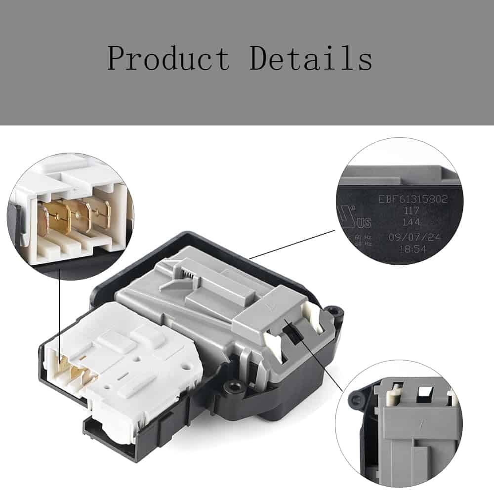 Switch de Bloqueo de Puerta para Lavadora EBF61315802 para L-G WM3770HVA, WM3270CW, WM3670HVA, WM3670HWA, WM8100HVA, WM3770HWA, WM3400CW, WM3500CW, WM3600HVA, WM3700HVA, WM4000HWA – Repuesto de alta calidad fabricado con materiales premium que resisten la humedad, el calor y el estrés para un uso prolongado y rendimiento confiable. Diseñado con amplia compatibilidad para diversos modelos de lavadoras, tanto de carga frontal como superior. Instalación sencilla sin complicaciones, con instrucciones fáciles de seguir y no se requieren herramientas especiales. Presenta características avanzadas de seguridad que bloquean la puerta durante el funcionamiento, evitando accidentes y derrames. Ideal para hogares con niños o mascotas, manteniendo seguro el tiempo de lavandería. Garantía de 2 años que respalda tu compra, ofreciendo tranquilidad en caso de cualquier inconveniente.