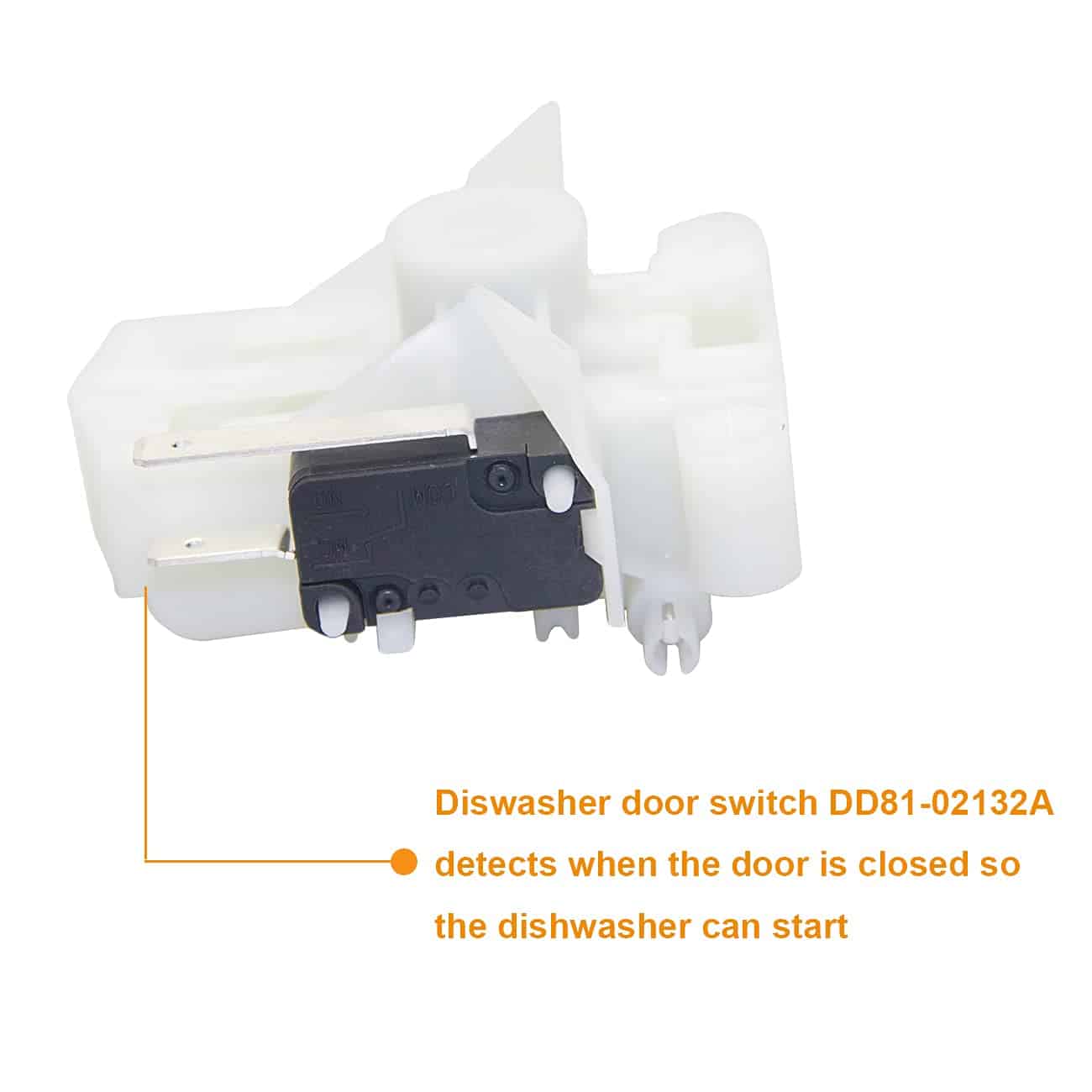 Un nuevo interruptor para la cerradura de la puerta DD81-02132A para lavavajillas Samsung. Compatible con DD81-01629A AP6287051, PS8764558, EAP8764558. Este interruptor es compatible con modelos como; DW80K7050UG/AA-02, DW80K5050UG/AA-00, DW80K5050US/AA-01, DW80K5050US/AA-02, DW80K5050US/AA-03. Fácil de instalar por ti mismo después de ver algunos videos en YouTube, una manera económica de arreglar o reparar tu lavavajillas, práctico y asequible. Compra con confianza – las piezas de SZHY-LINK siempre vienen con una garantía de 1 año.