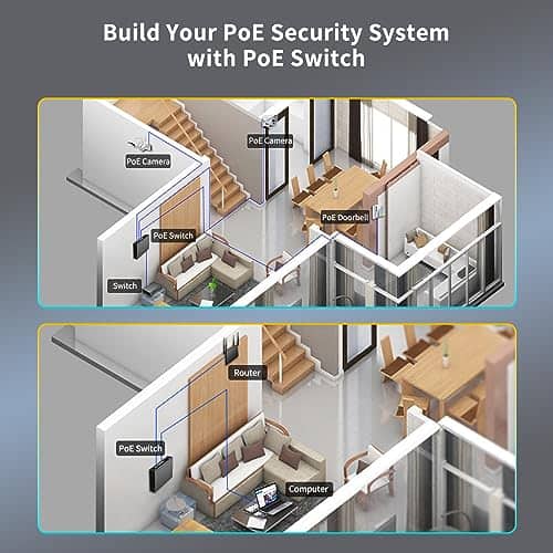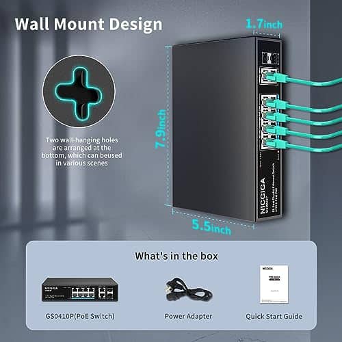 1. Switch PoE+ de 8 puertos Gigabit con 8 puertos RJ45 PoE+ 10/100/1000 Mbps, 2 puertos de enlace ascendente Gigabit + 2 puertos SFP. Los puertos SFP de enlace ascendente pueden proporcionar más ancho de banda y conectar diferentes dispositivos como enrutadores, NVRs, etc. 2. Admite 48v IEEE 802.3af/at, cada puerto proporciona hasta 30W de potencia y un presupuesto total de potencia de PoE de 120W. Ampliamente utilizado en cámaras IP HD, teléfonos IP, puntos de acceso inalámbrico, equipos de red informática y otros escenarios. Tenga en cuenta: no admite PoE de 12v/24v. 3. Diseño de protección contra sobretensiones de 4KV que puede proteger productos y equipos de daños incluso en mal tiempo. Con ventilador de grado industrial y carcasa de metal para garantizar una buena disipación de calor y estabilidad del dispositivo. Admite montaje en escritorio y rack (orejas de montaje incorporadas). 4. Plug and play no administrado, admite función de detección de potencia, detección automática de dispositivos PD, compatible con dispositivos no PoE para proporcionar conexión de datos, no se requiere software o configuración, admite MDI/MDIX automático y transferencia de datos sin bloqueo. 5. Cada switch PoE se prueba rigurosamente en términos de confiabilidad, calidad y rendimiento. Brindamos una garantía de un año y soporte técnico de por vida para todo el producto.